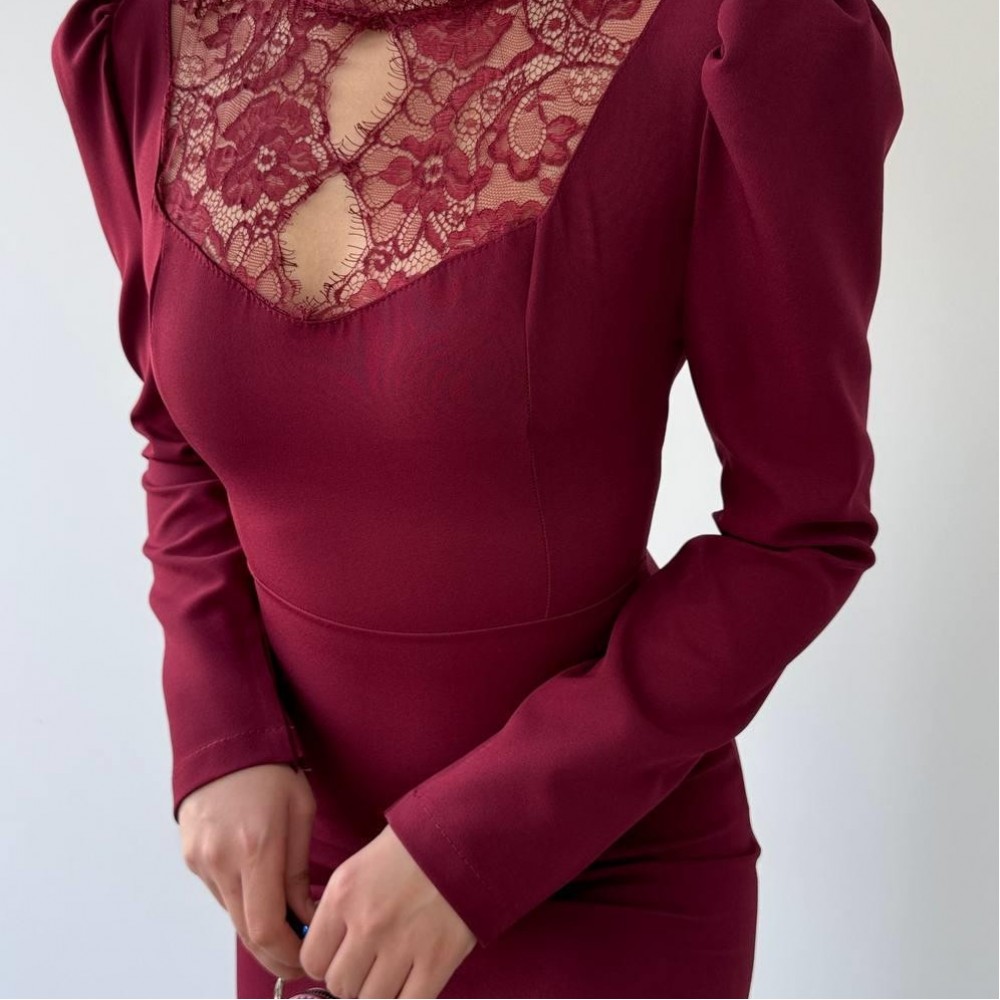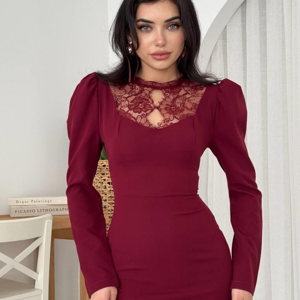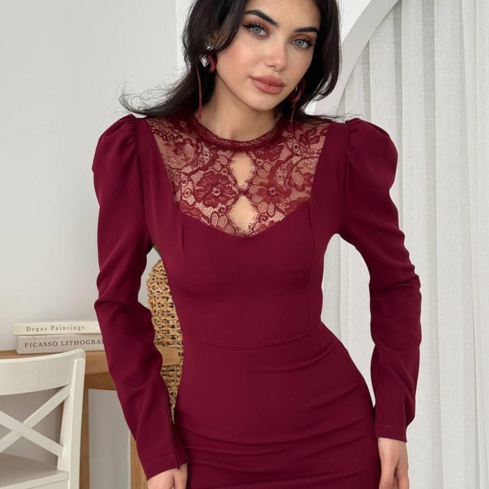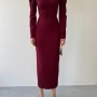 M00570-BORDO Bordo ELBİSE