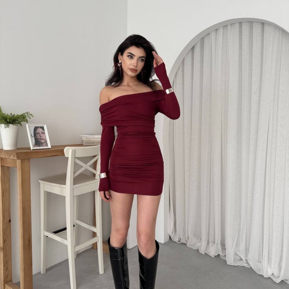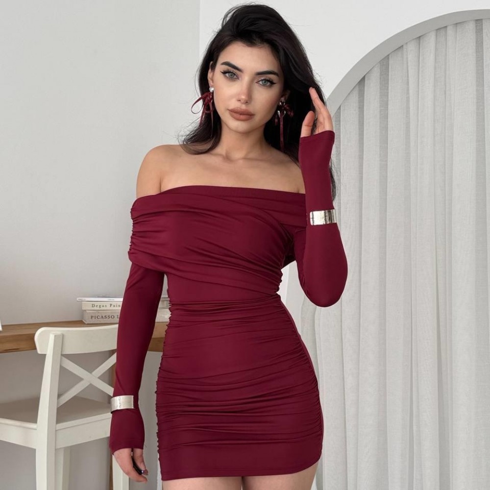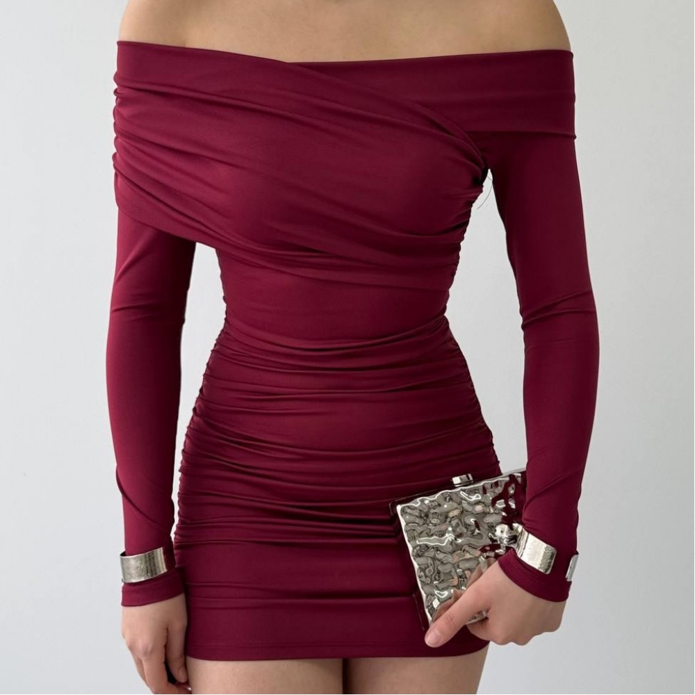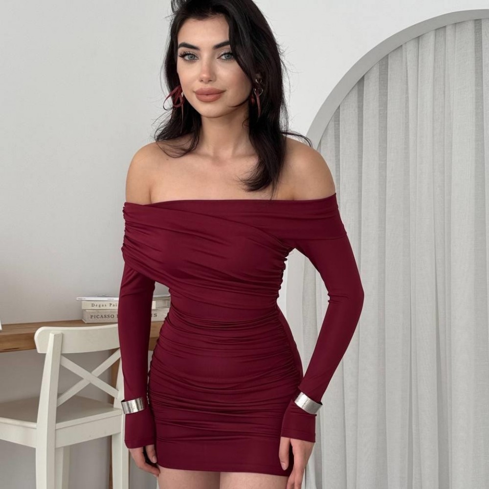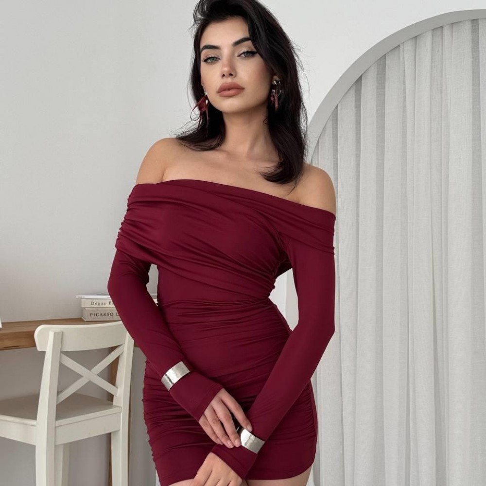 M00577-BORDO Bordo ELBİSE