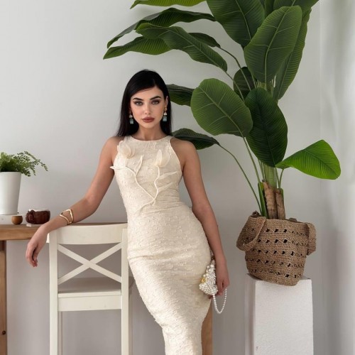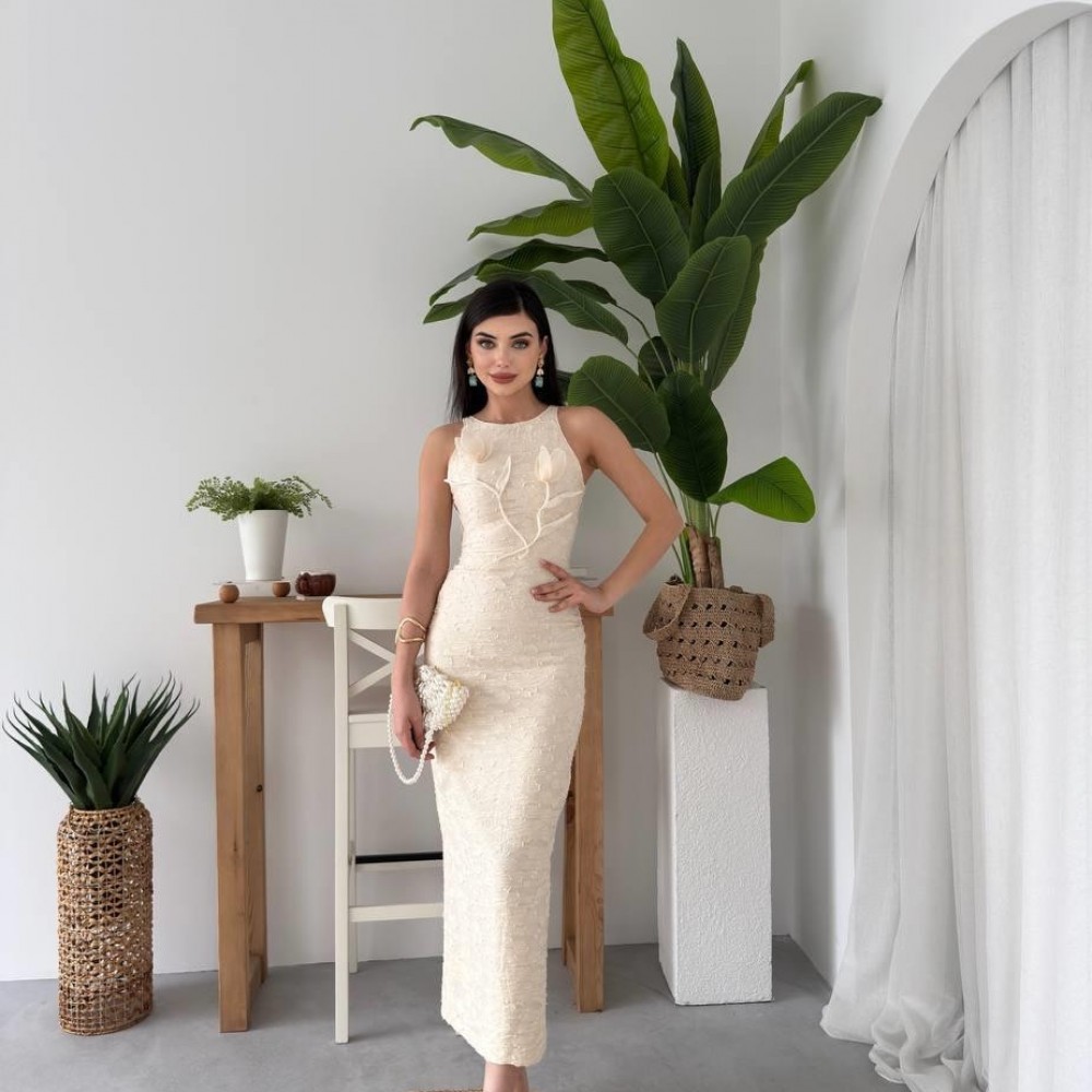 M00587-BEJ Bej ELBİSE