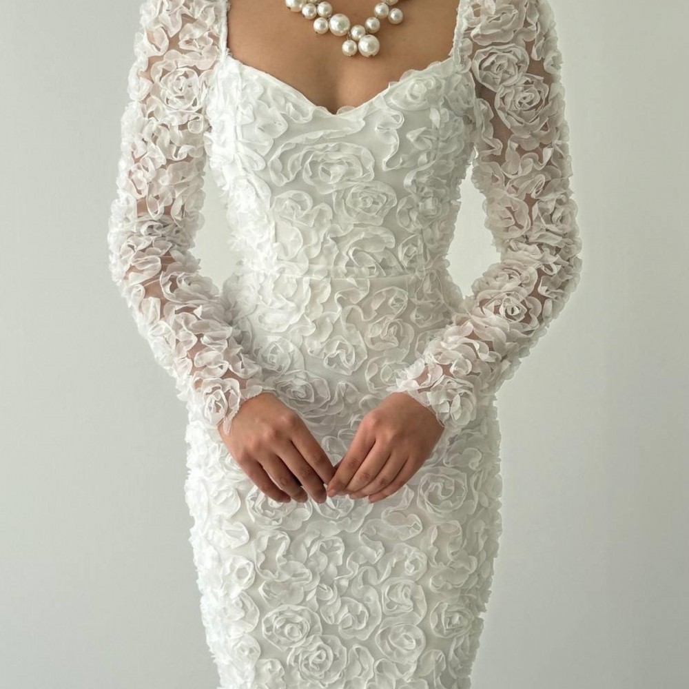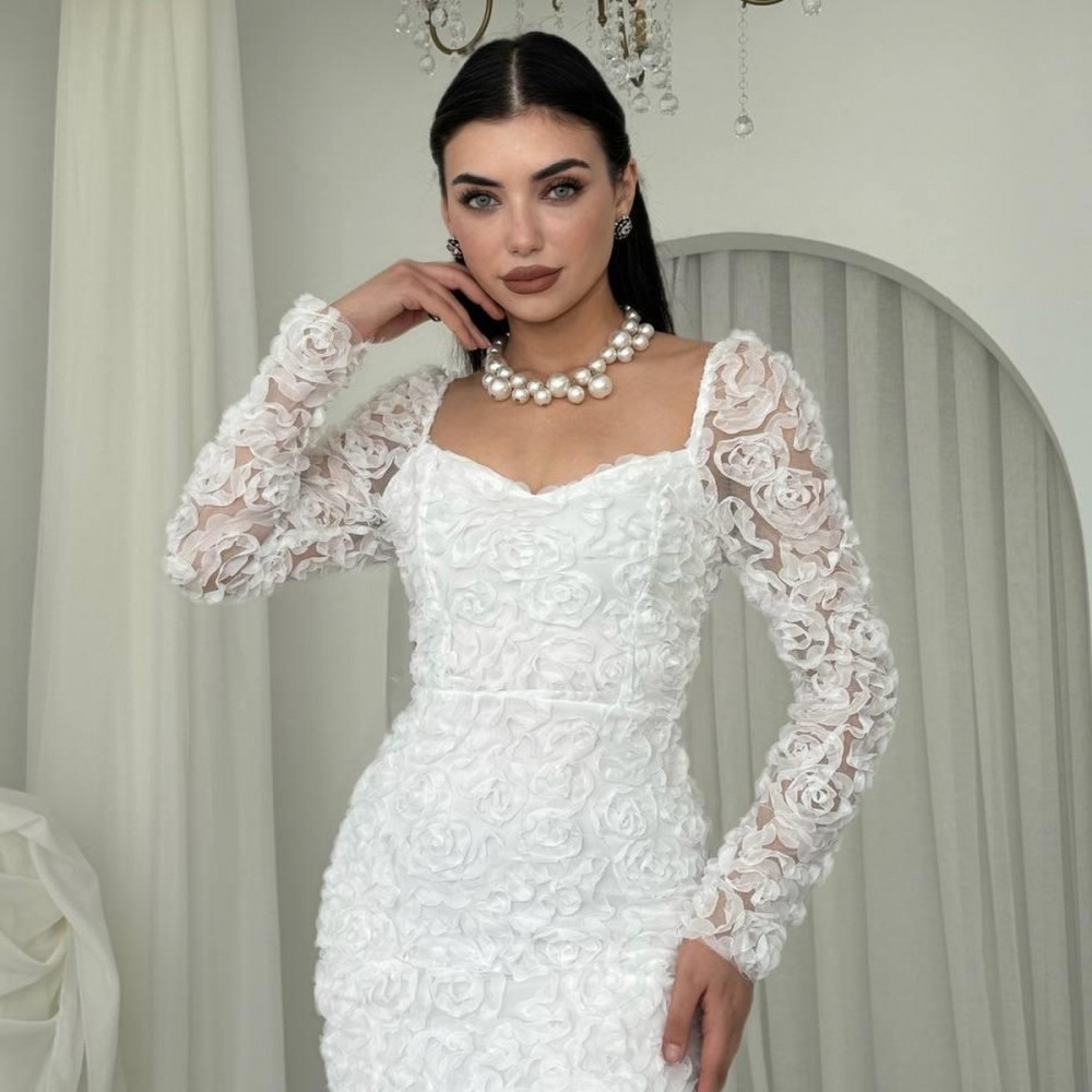 M00588-BEYAZ Beyaz ELBİSE