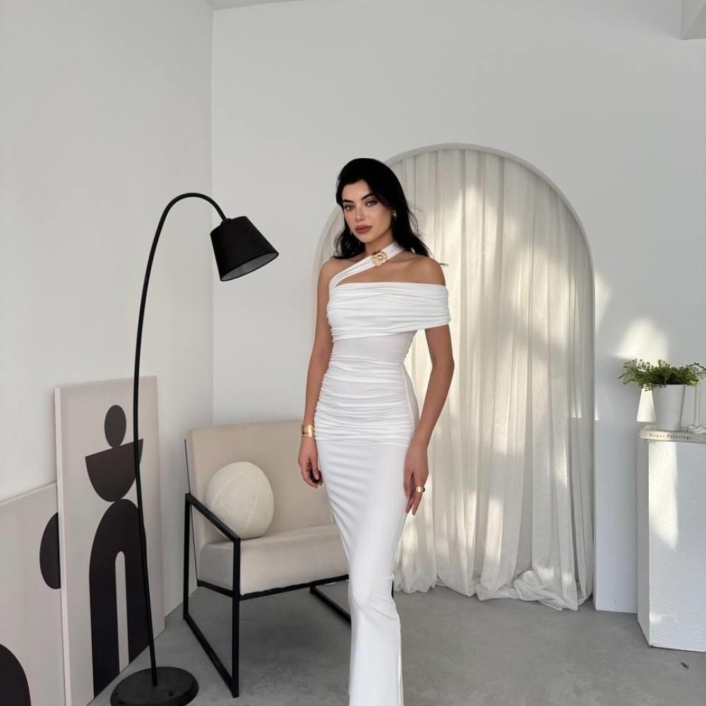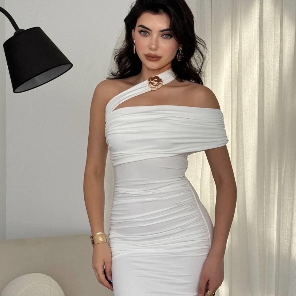 M00595-BEYAZ Beyaz ELBİSE