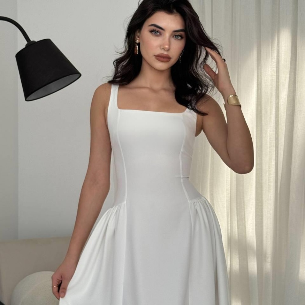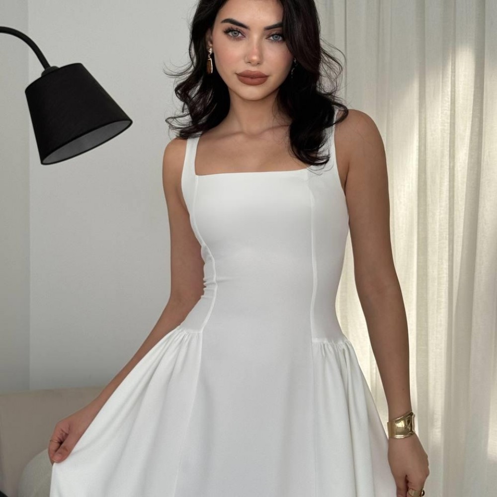 M00597-BEYAZ Beyaz ELBİSE