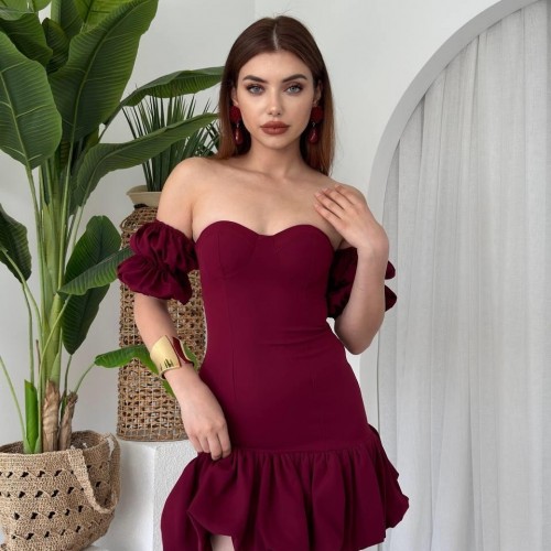 M00641-BORDO Bordo ELBİSE