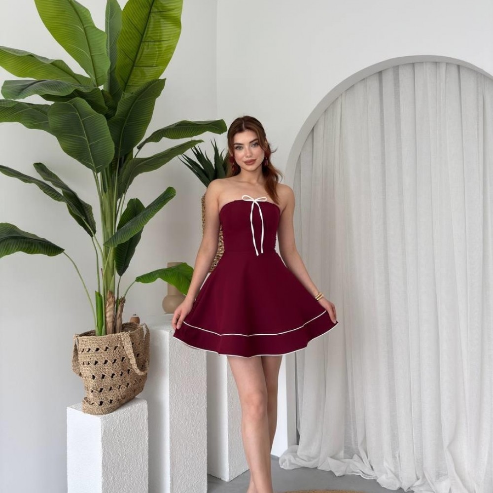M00653-BORDO Bordo ELBİSE