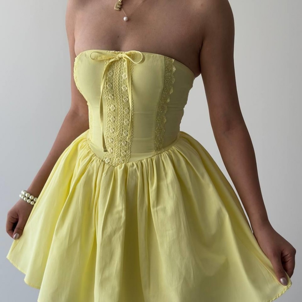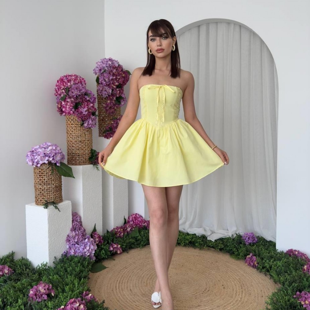 M00669-SARI Sarı ELBİSE