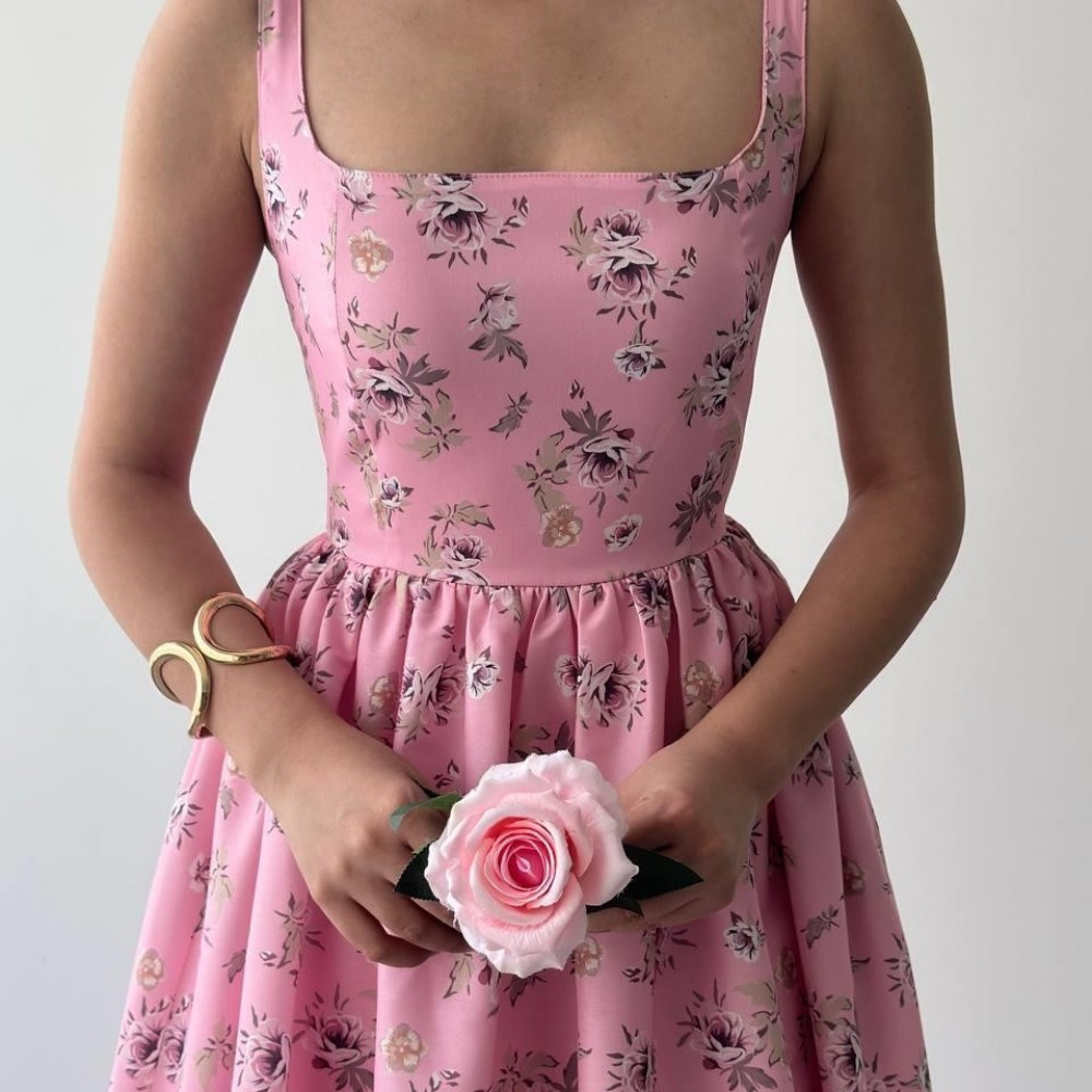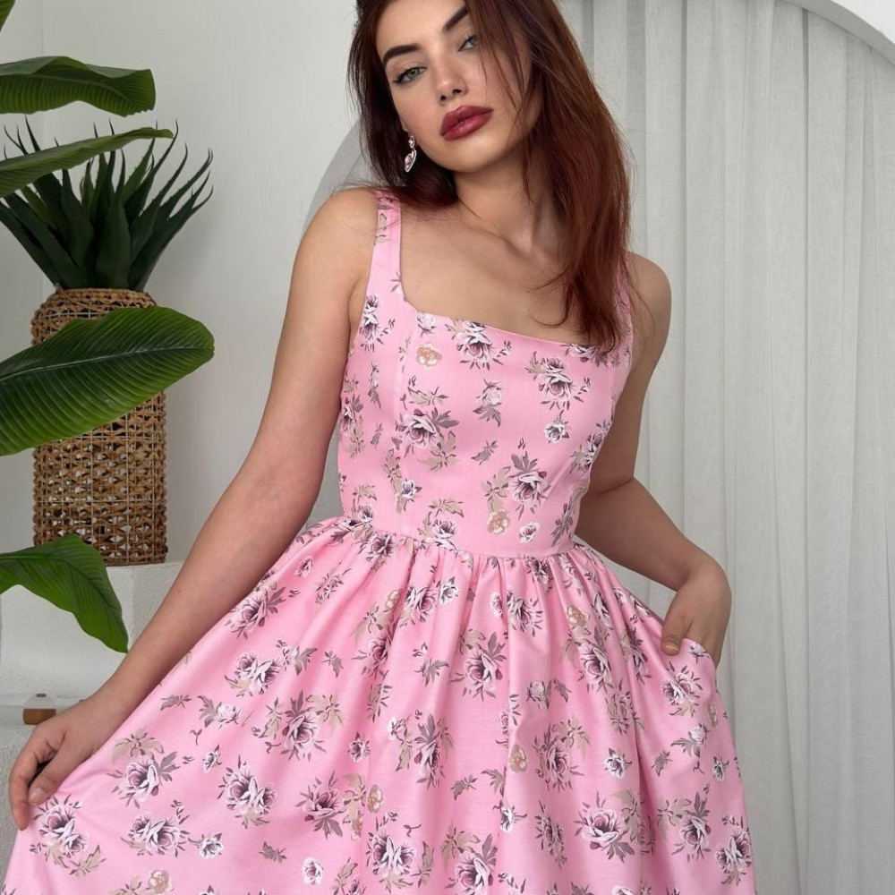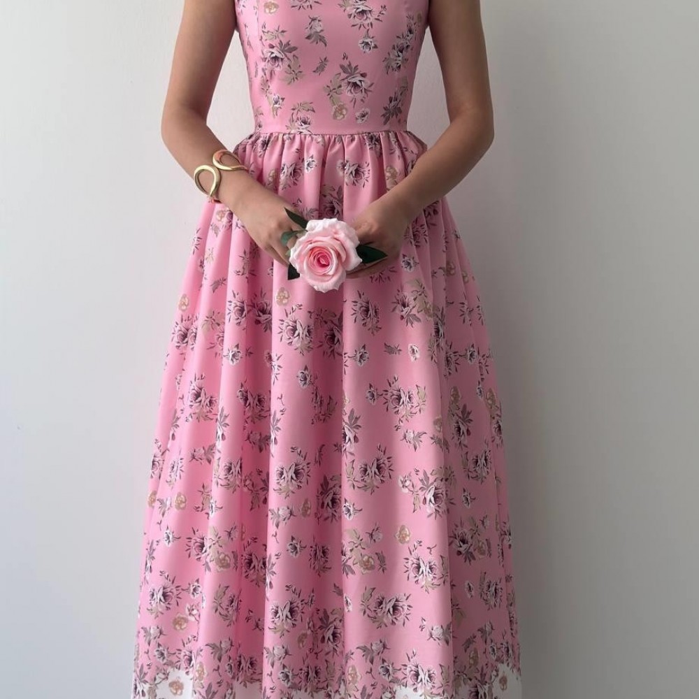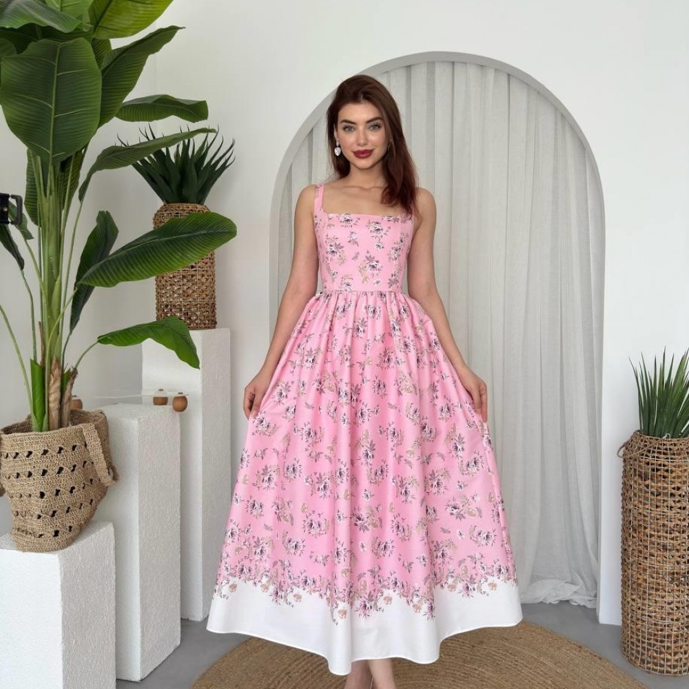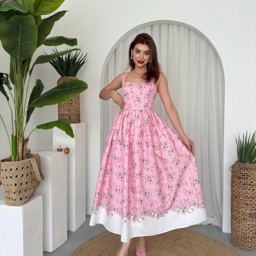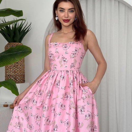 M00671-PEMBE Pembe ELBİSE