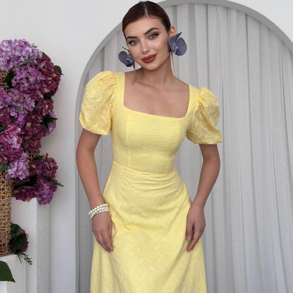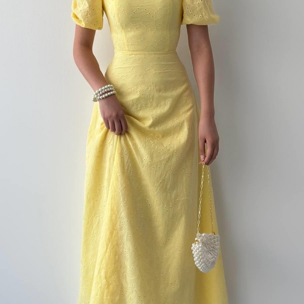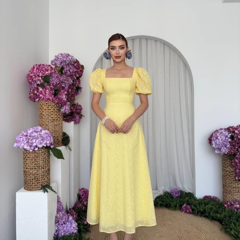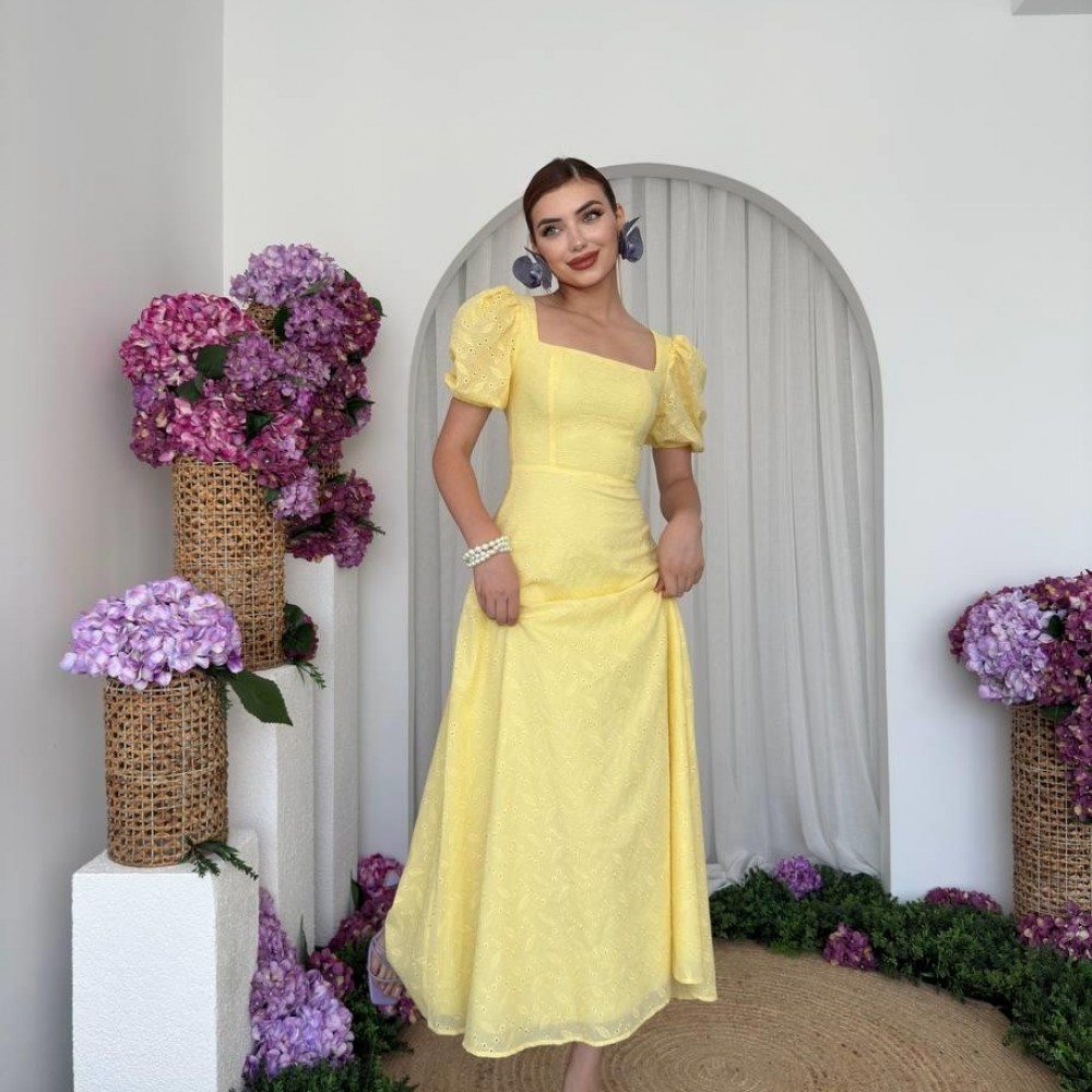 M00675-SARI Sarı ELBİSE