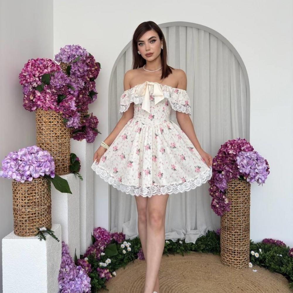 M00693-ÇİÇEK DESEN ÇİÇEK DESEN ELBİSE