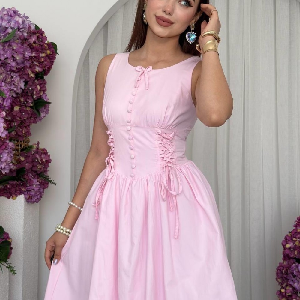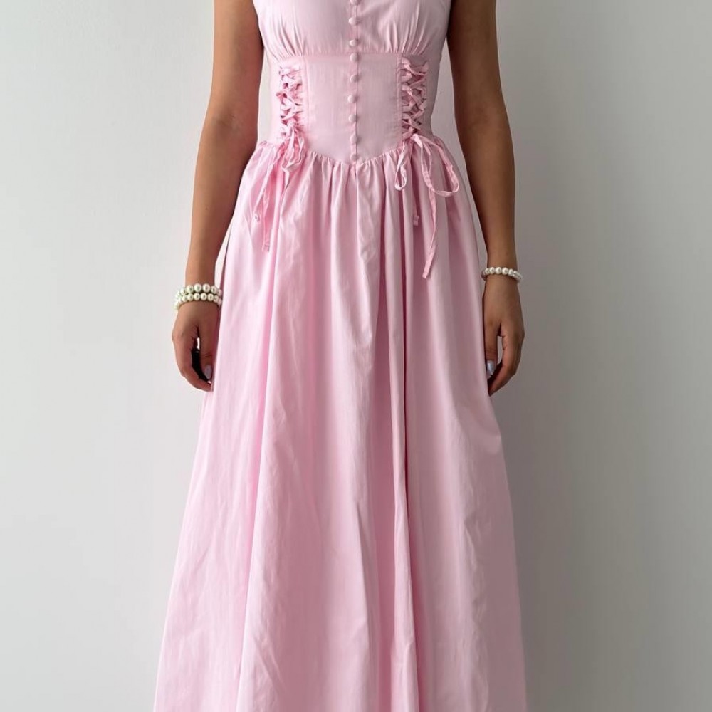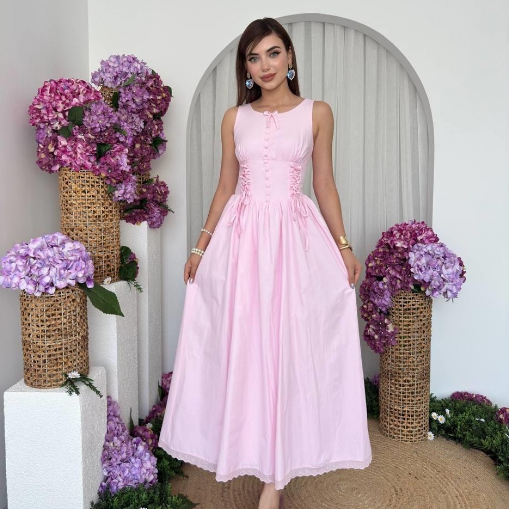M00702-PEMBE Pembe ELBİSE