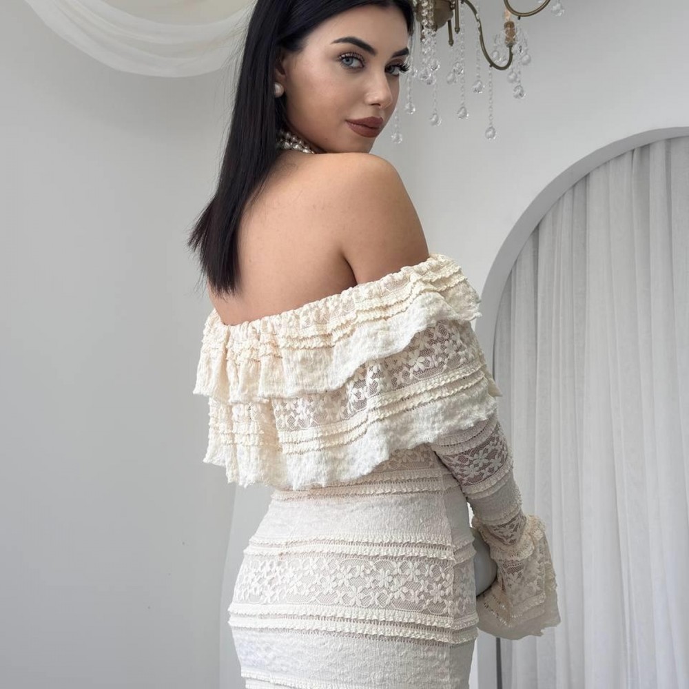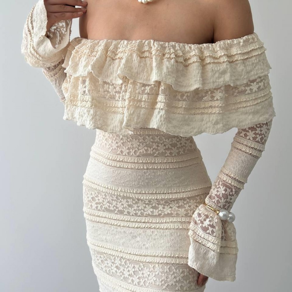 M00761-BEJ Bej ELBİSE