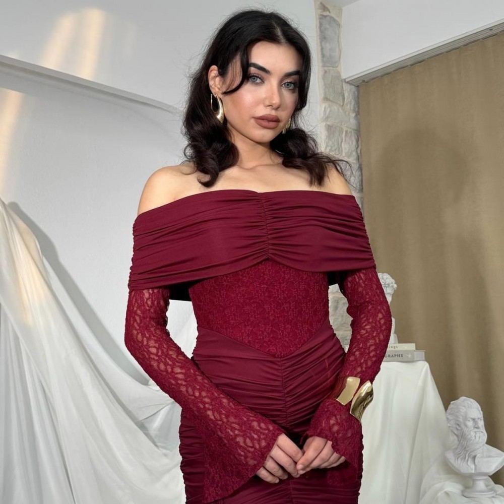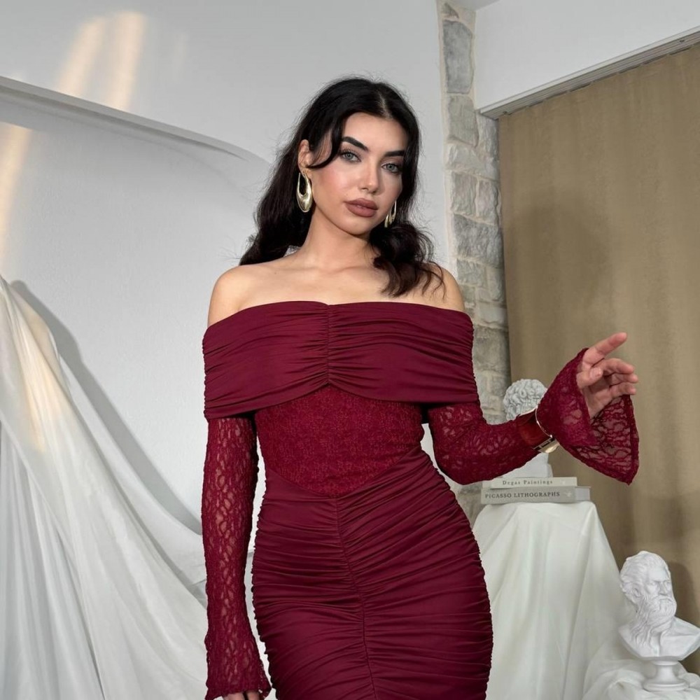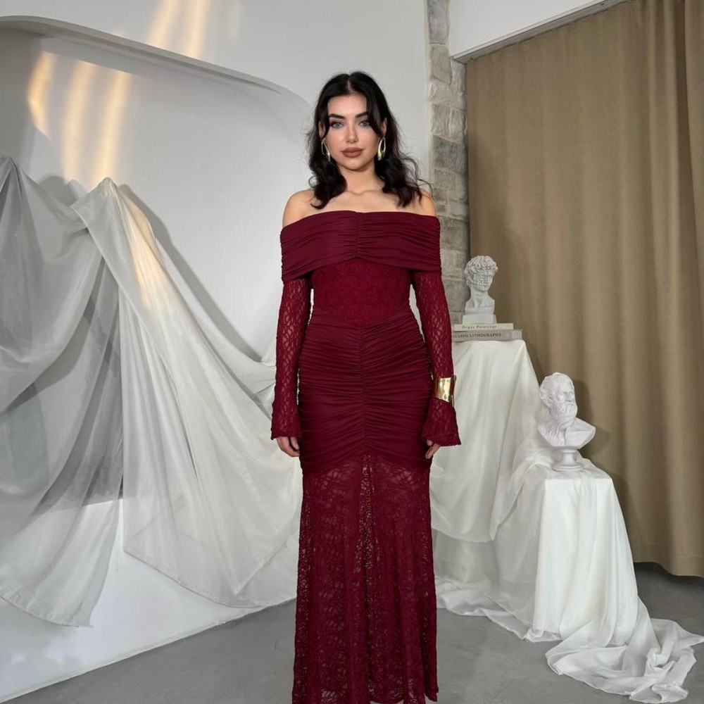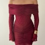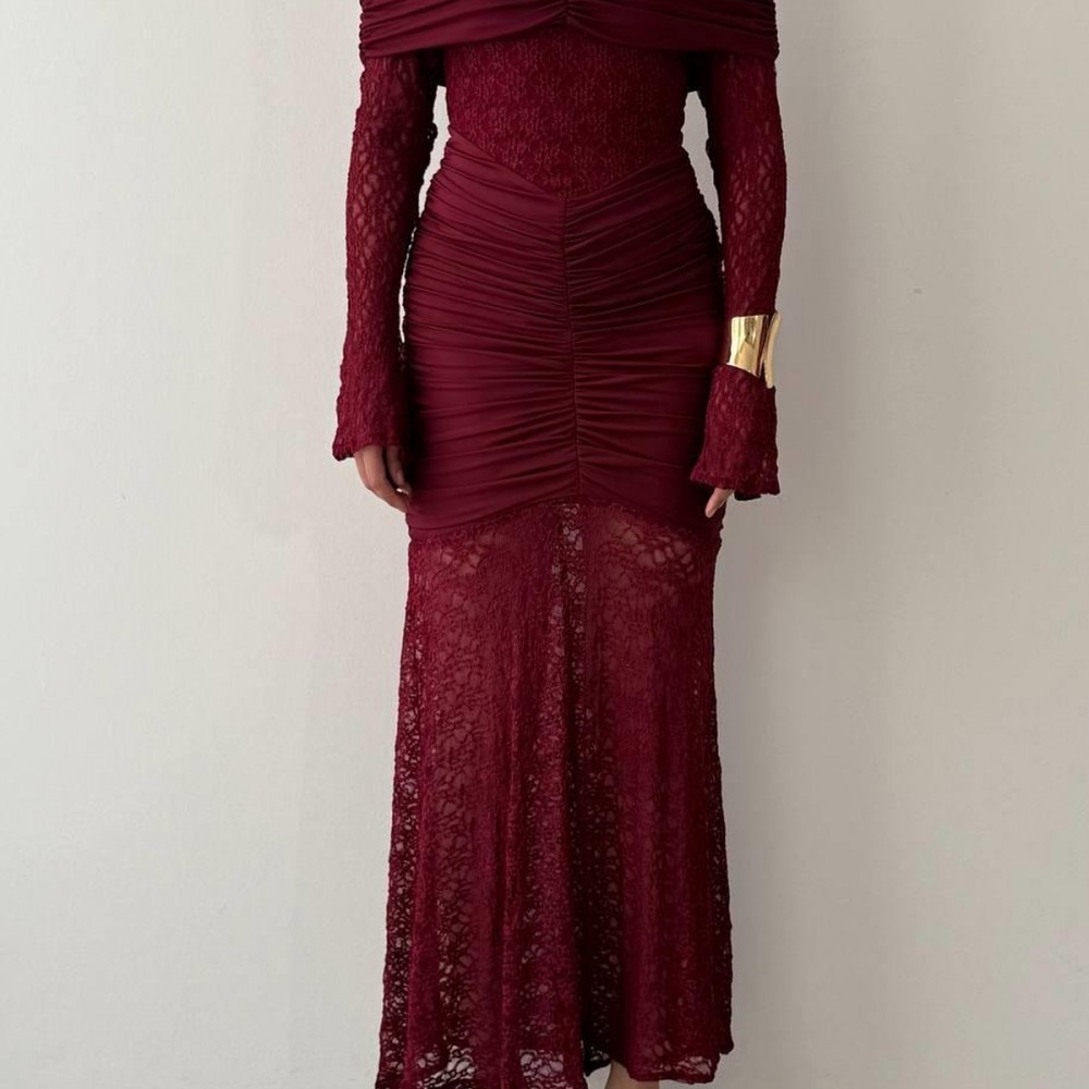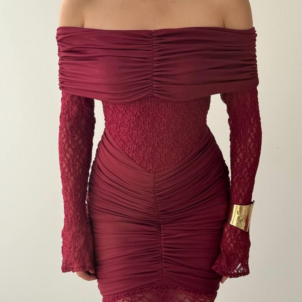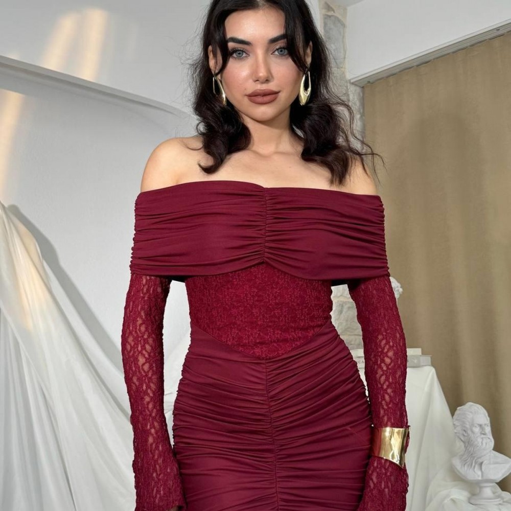 M00809-BORDO Bordo ELBİSE