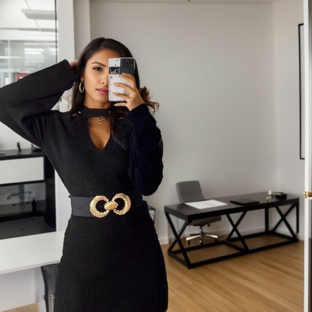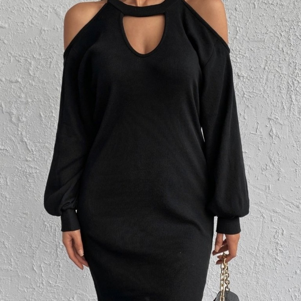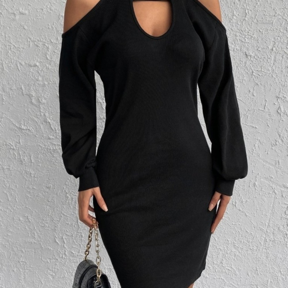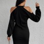 K7457-SIYAH SİYAH ELBİSE