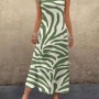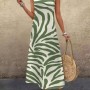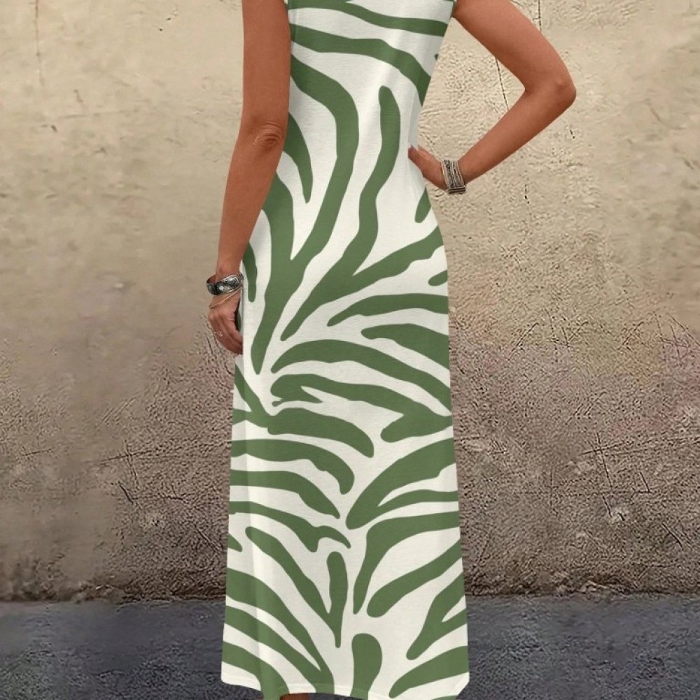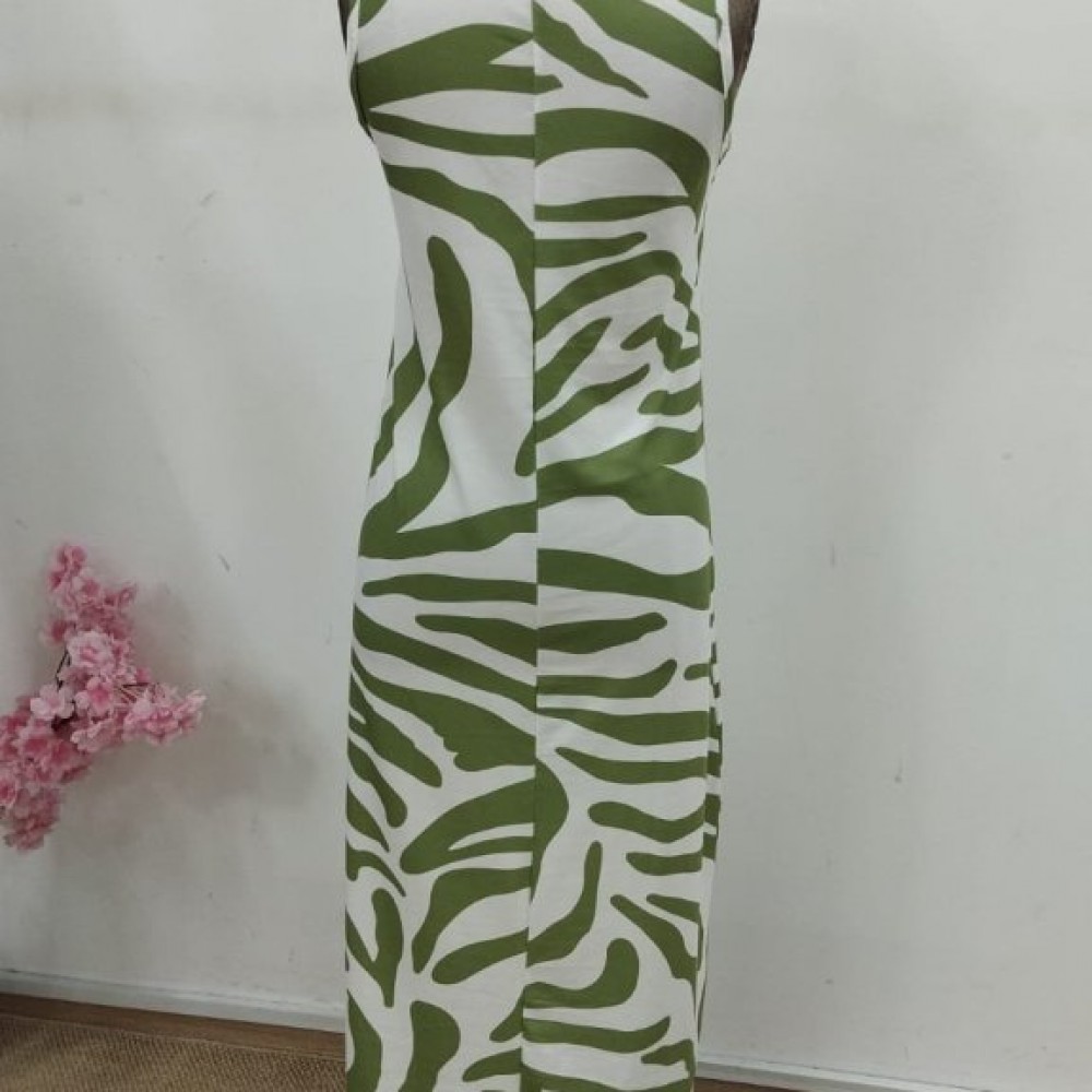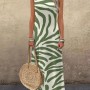 Kadın Askılı Yuvarlak Yakalı Desenli Uzun Süprem Elbise