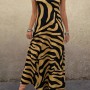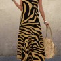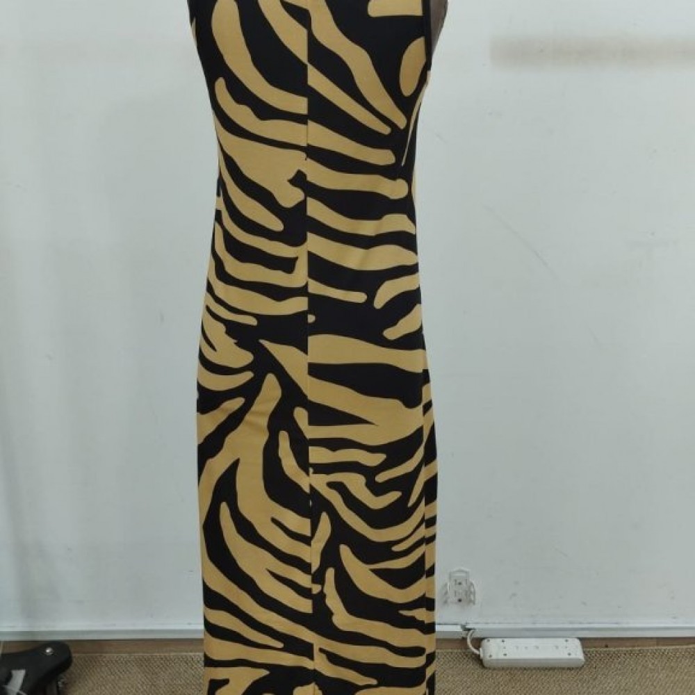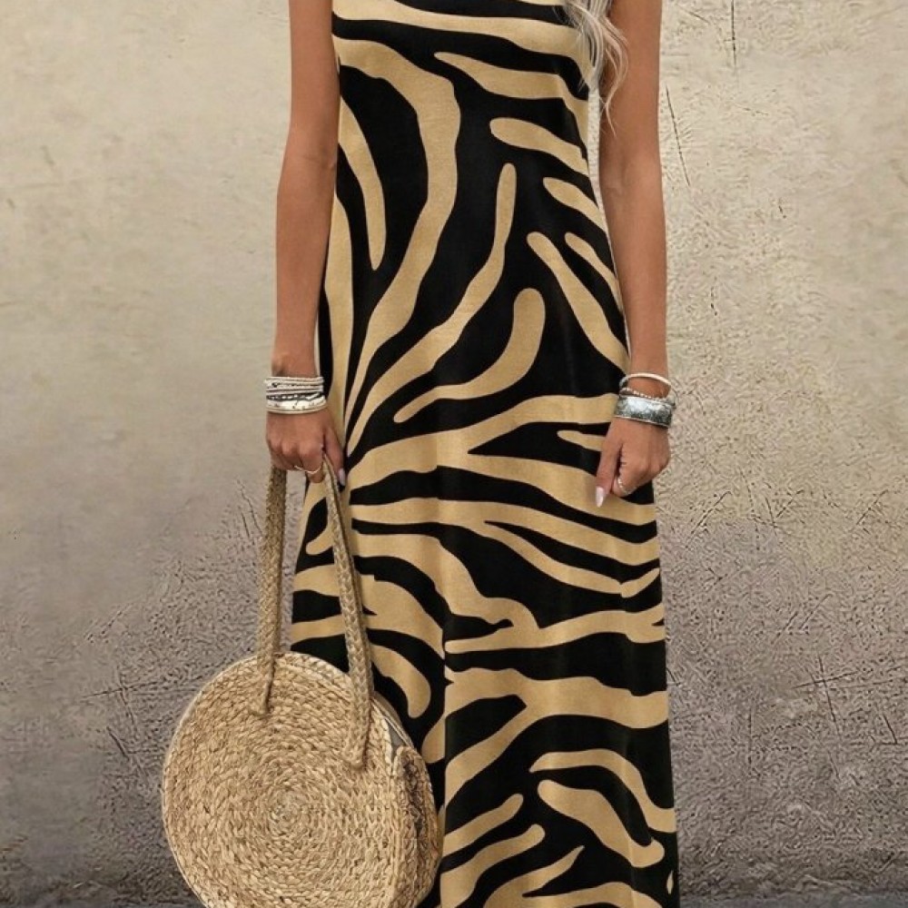 Kadın Askılı Yuvarlak Yakalı Desenli Uzun Süprem Elbise