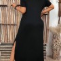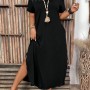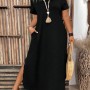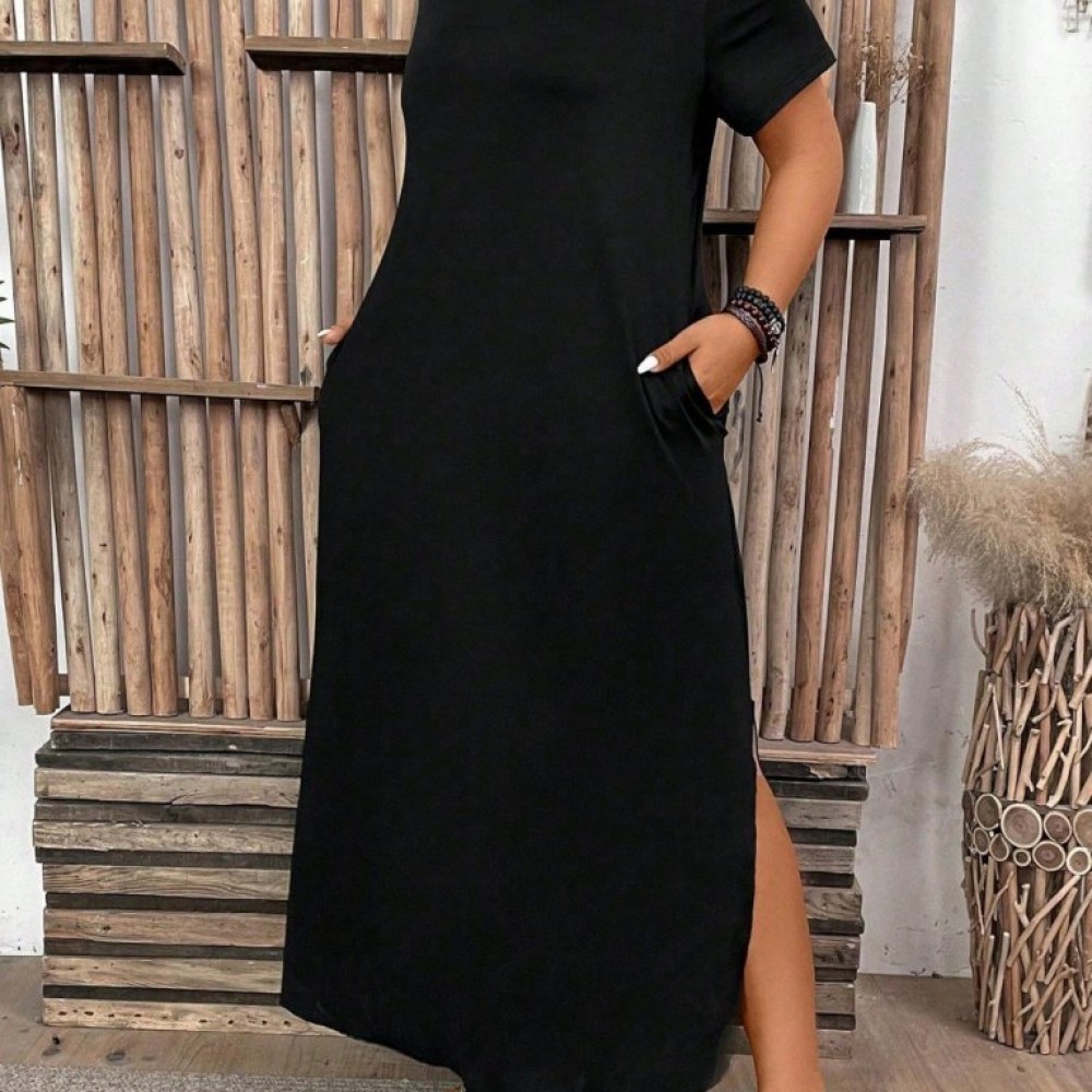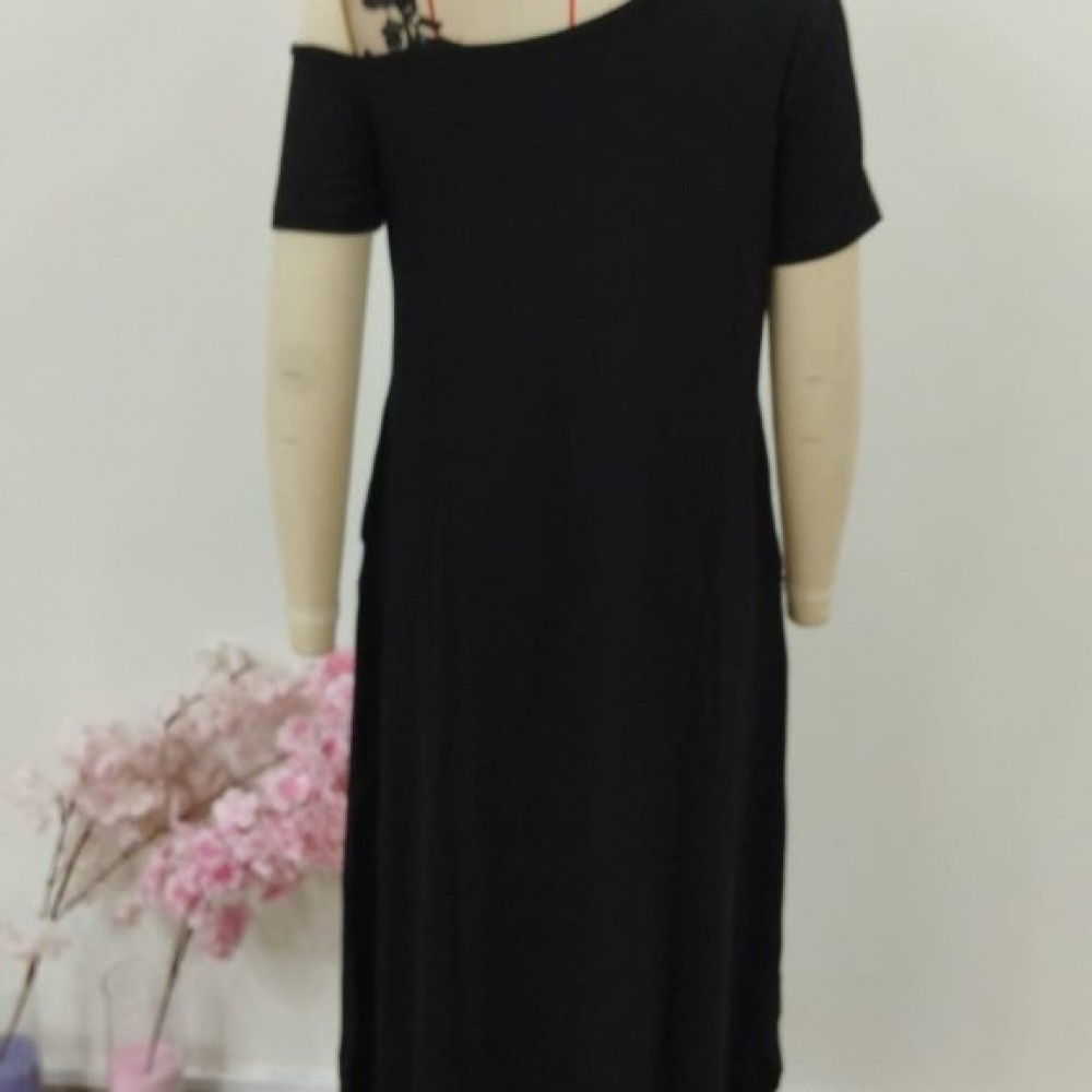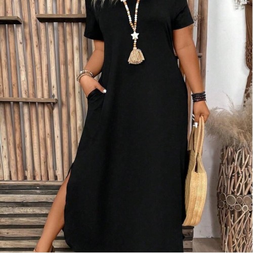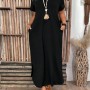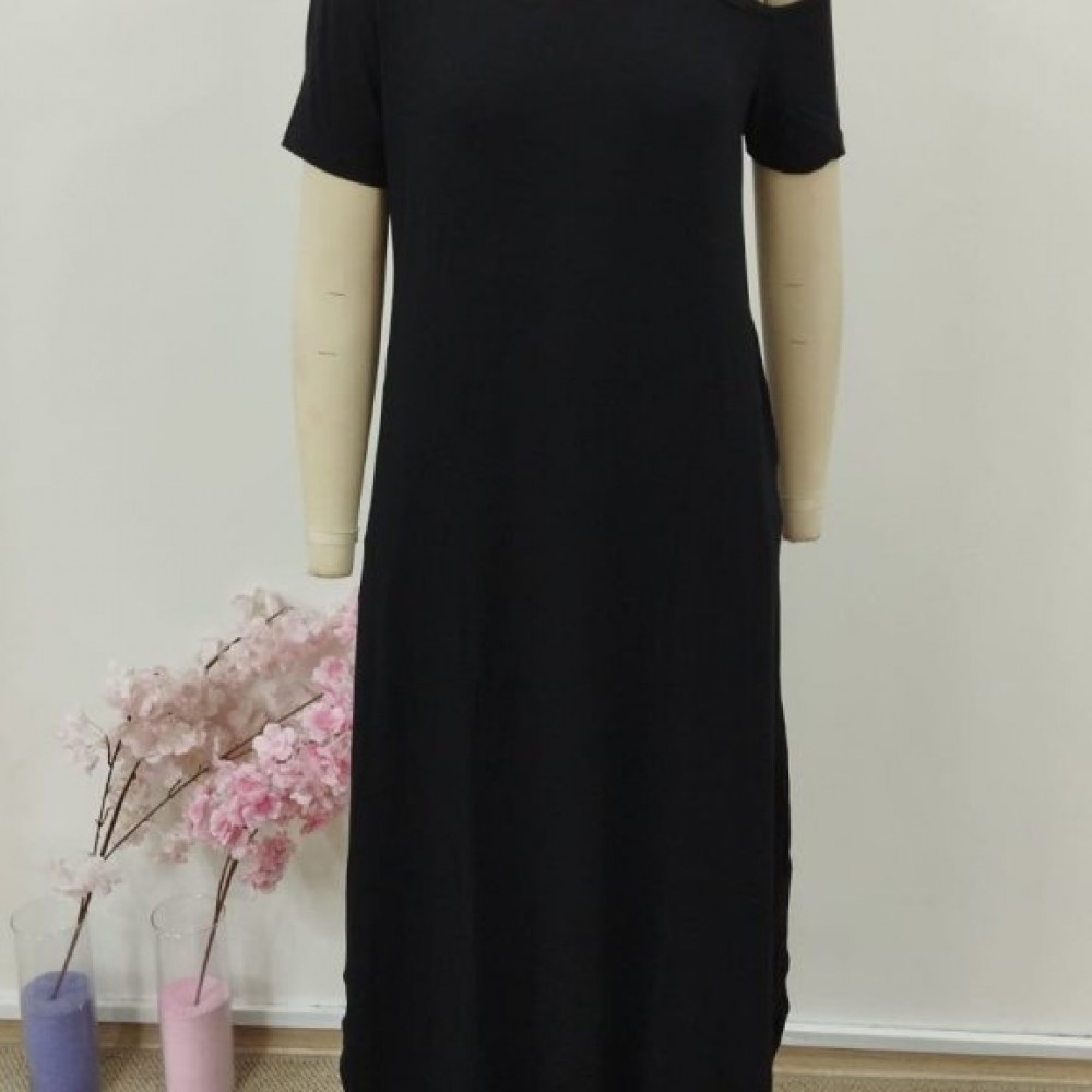 Kadın Kısa Kollu Omuzdan Açık Cep Detaylı Uzun Viskon Elbise