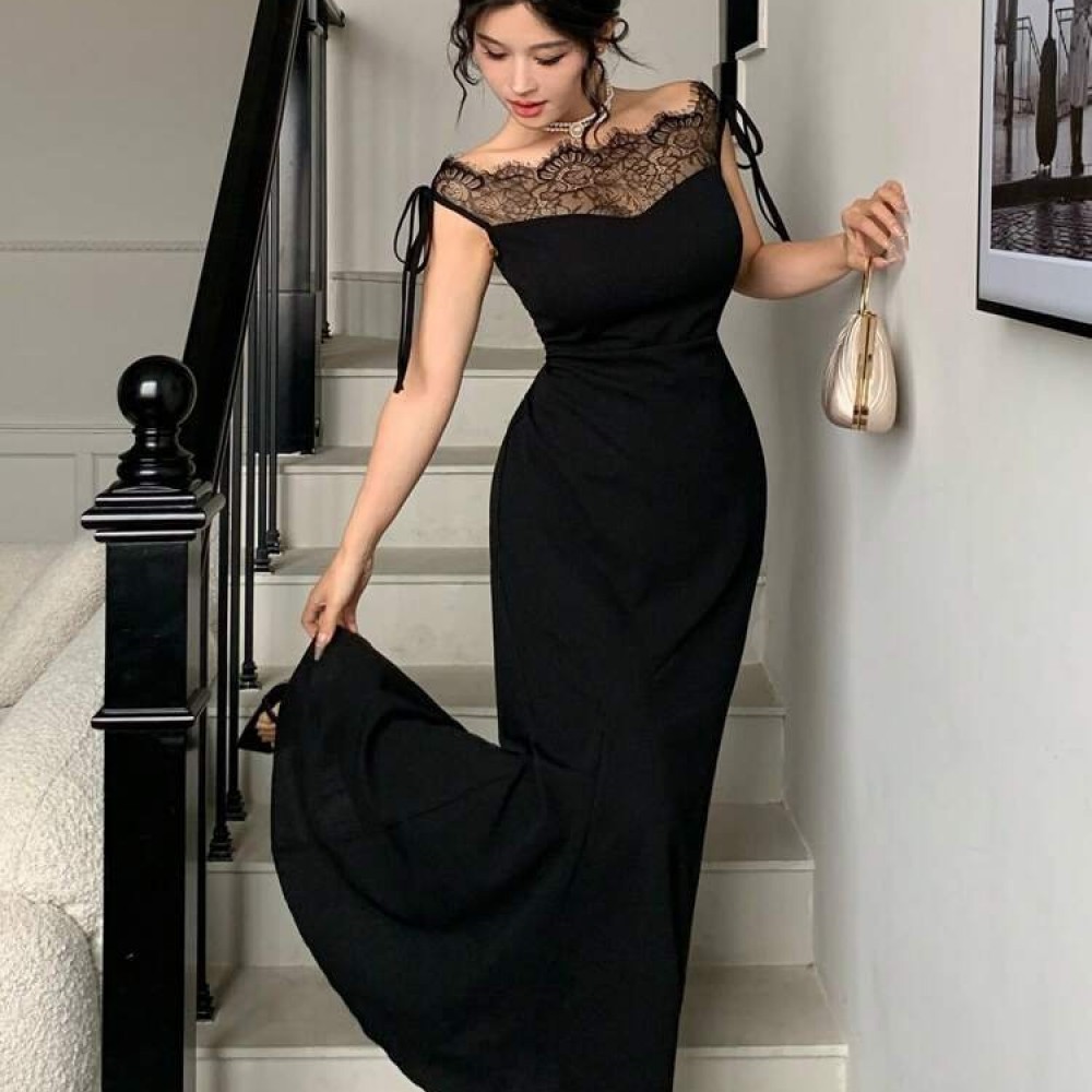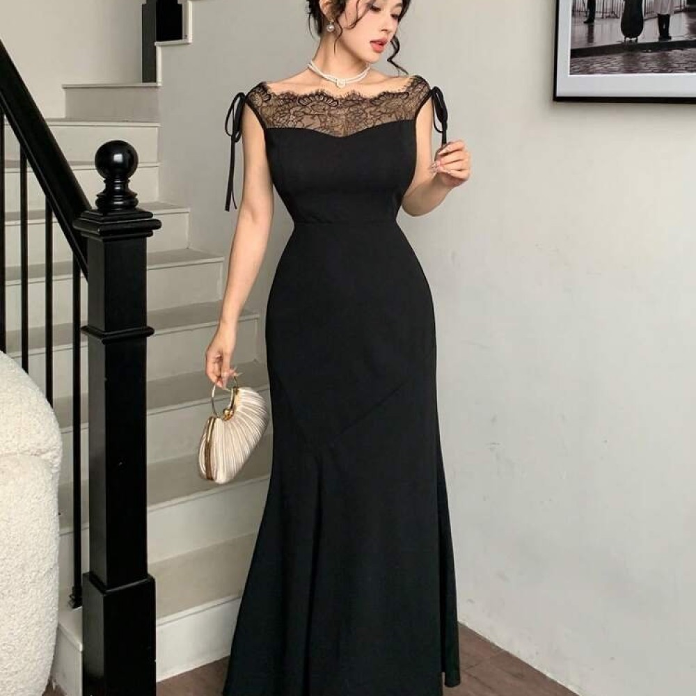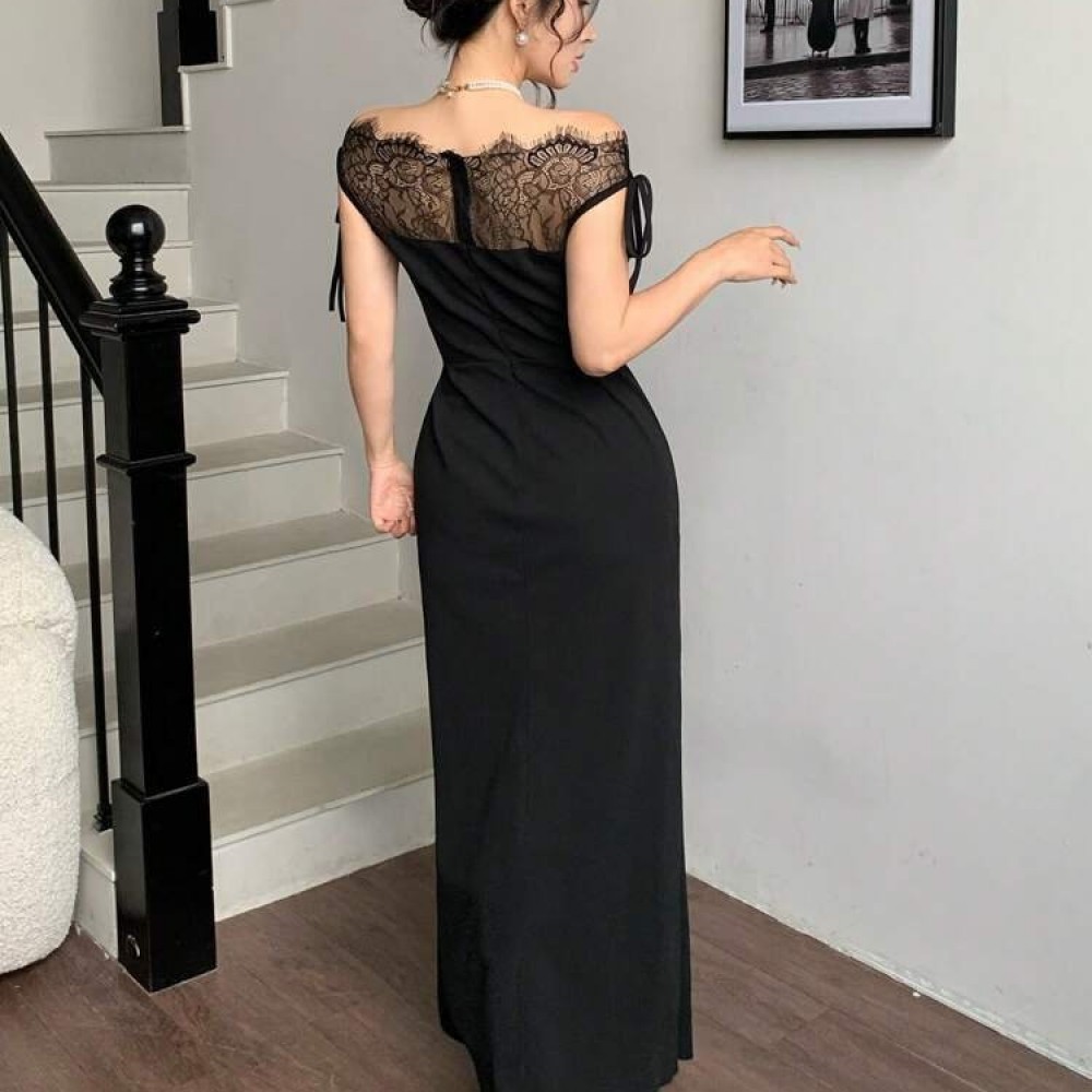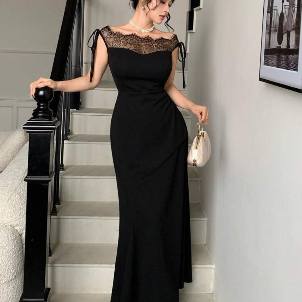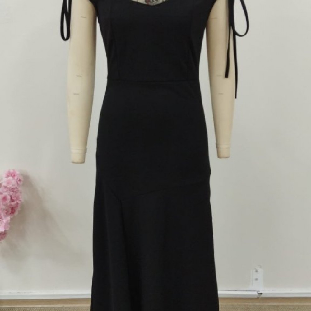 K10018-SIYAH SİYAH ELBİSE
