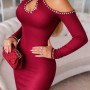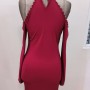 Kadın Omuzlardan Açık Boyundan Geçmeli Damla Detaylı Taşlı Midi Dalgıç