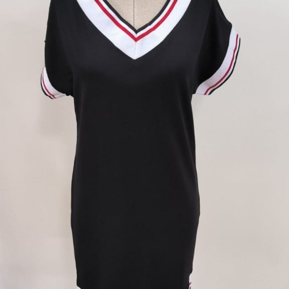 Kadın Kısa Kollu V Yakalı Kısa Viskon Iki Iplik Elbise