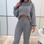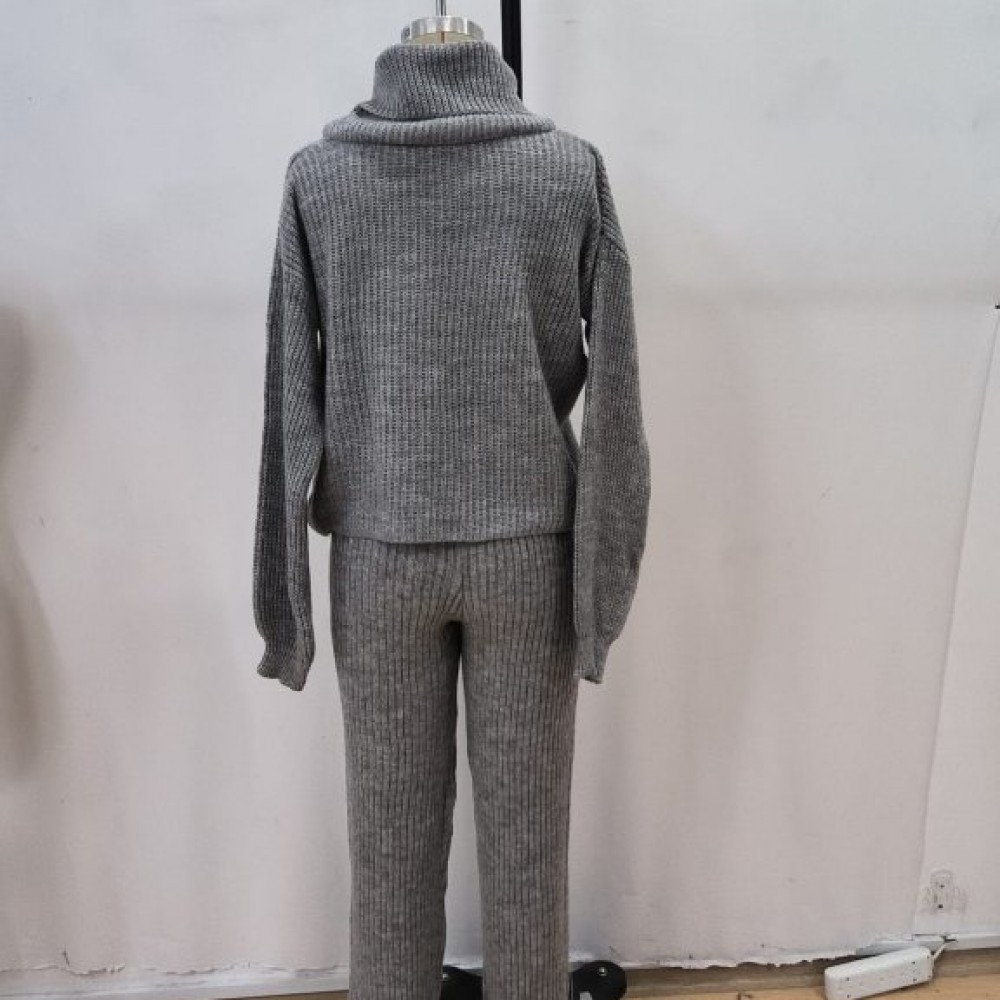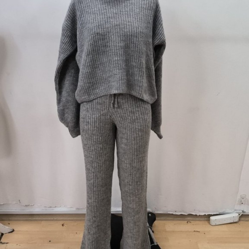 Kadın Uzun Kollu Balıkçı Yaka Kısa Triko Bluz Ve Pantolon Ikili Takım