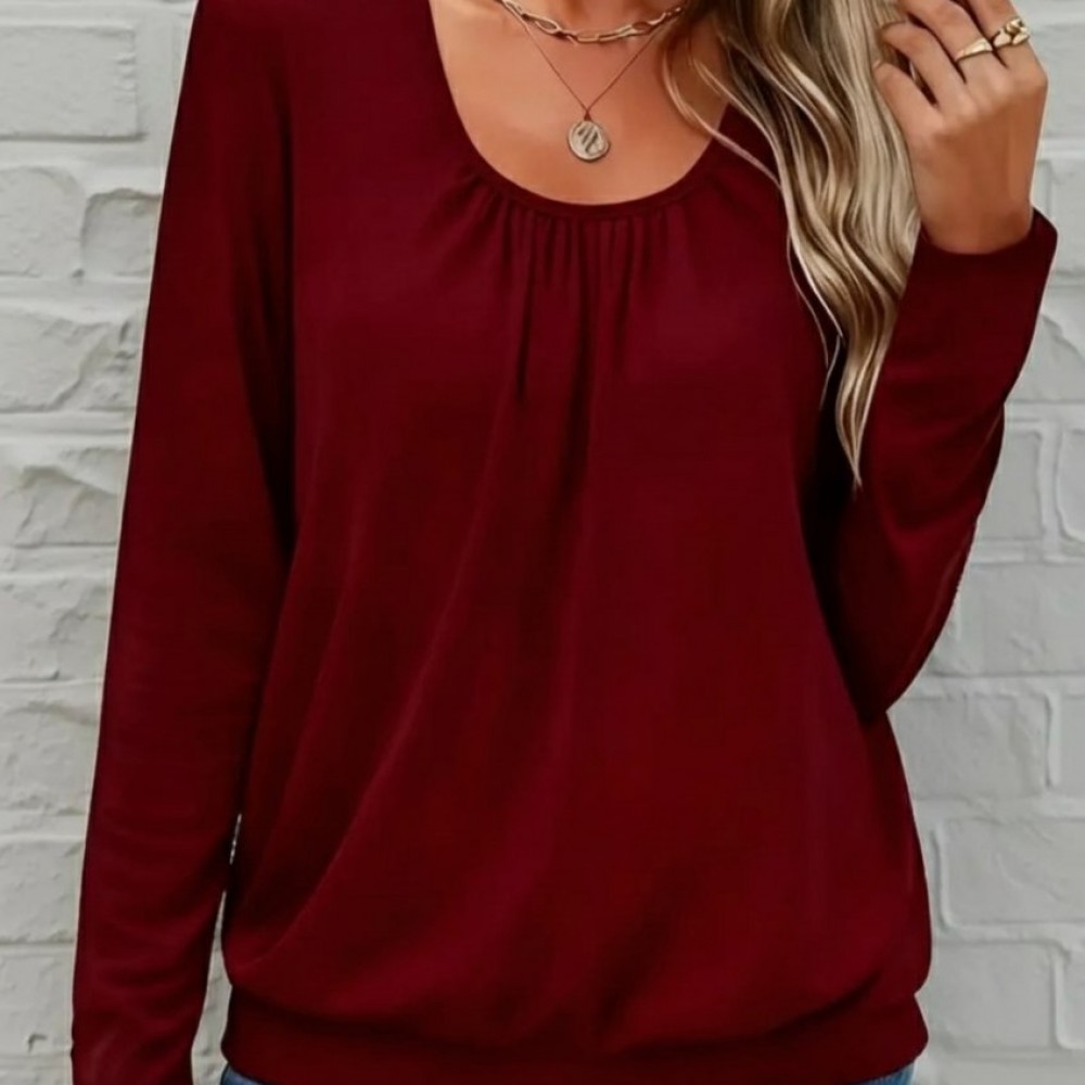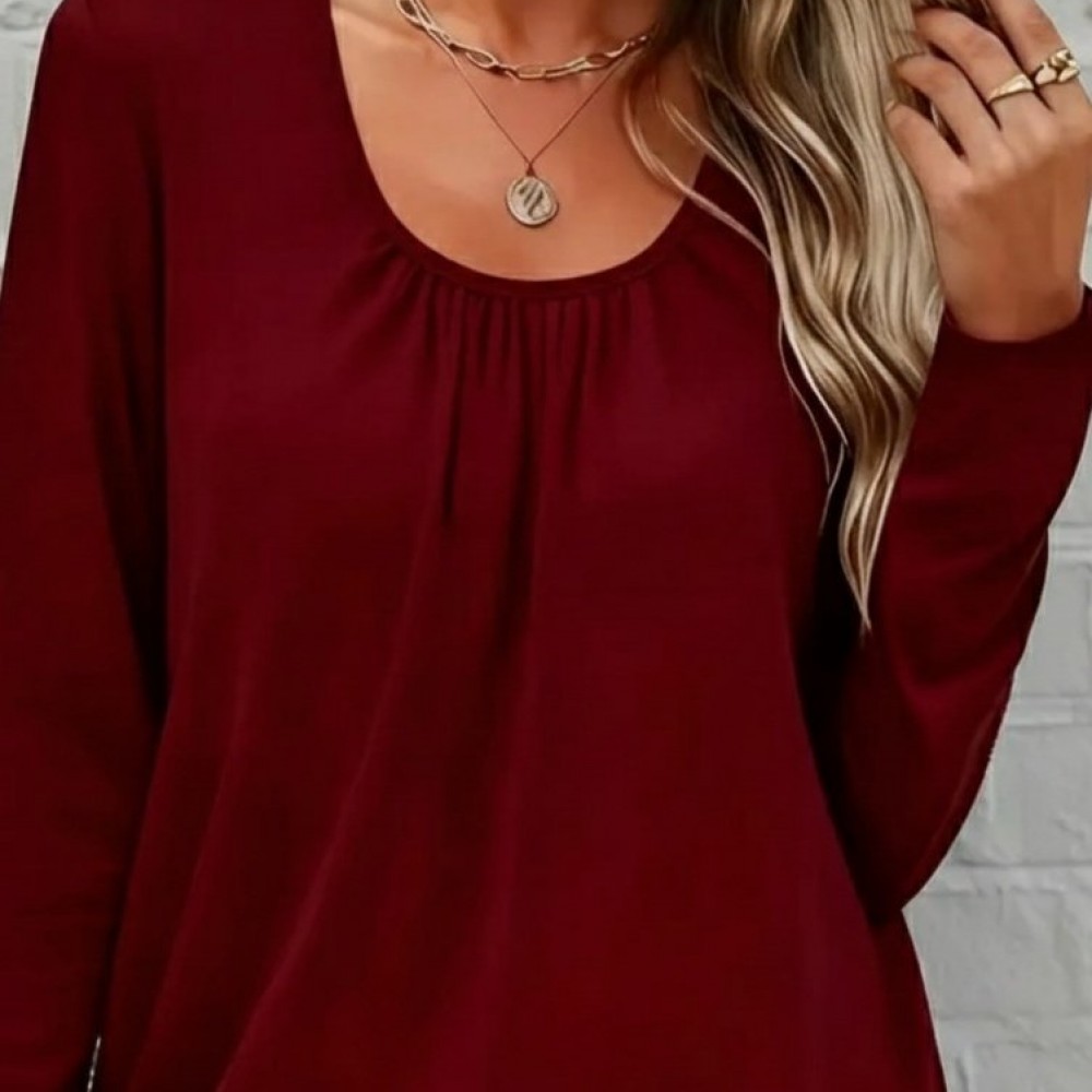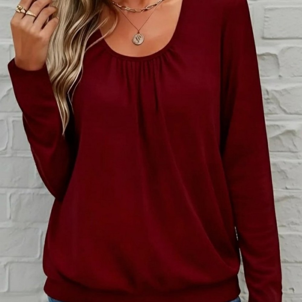 Kadın Uzun Kollu Yuvarlak Yakalı Viskon Bluz