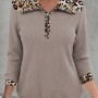 Kadın Uzun Kollu Leopar Yakalı Fermuarlı Waffle Bluz