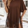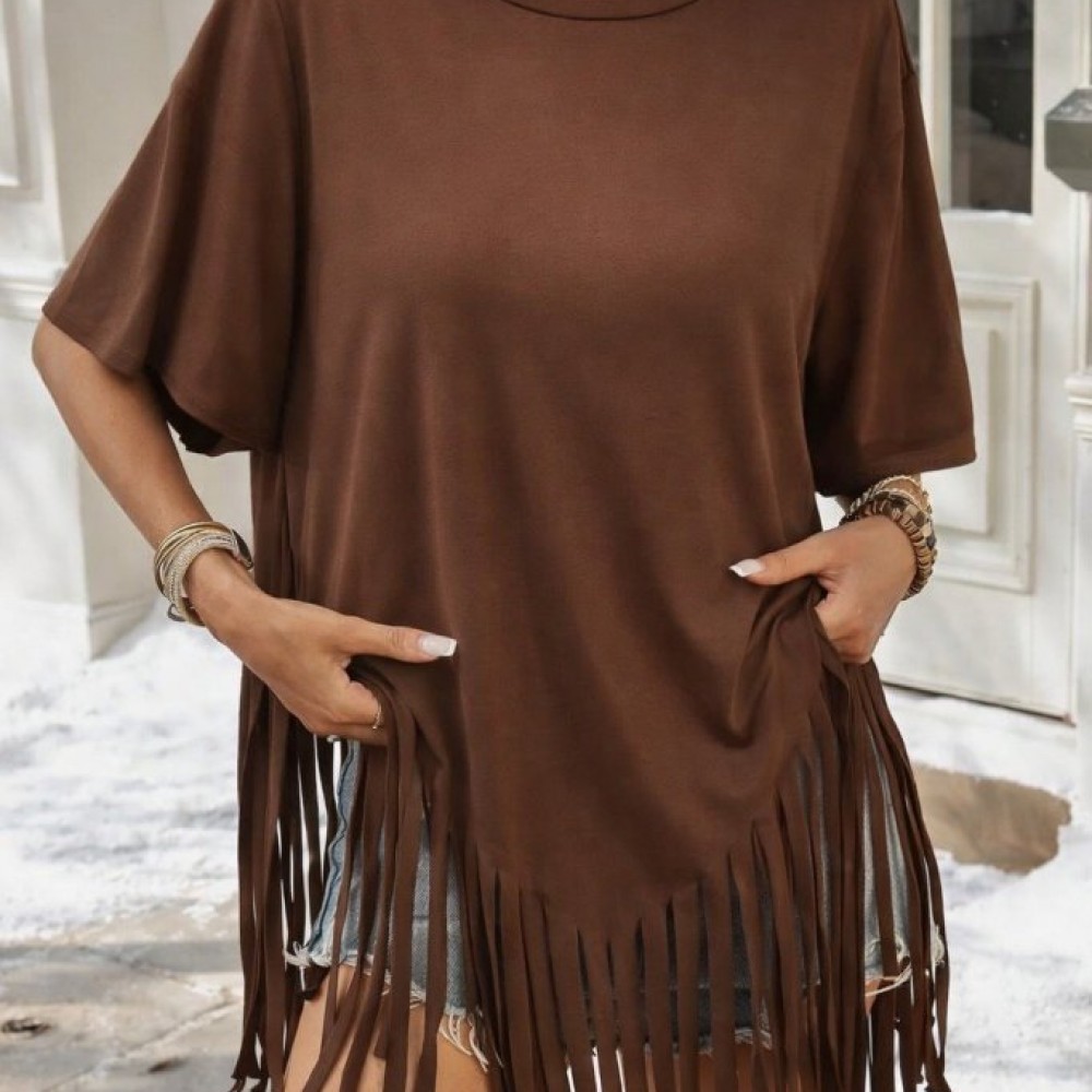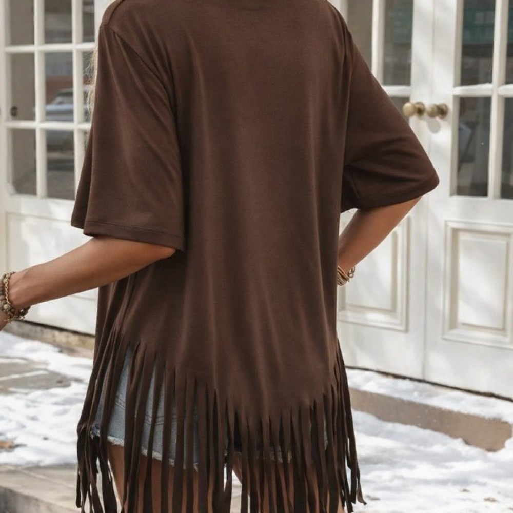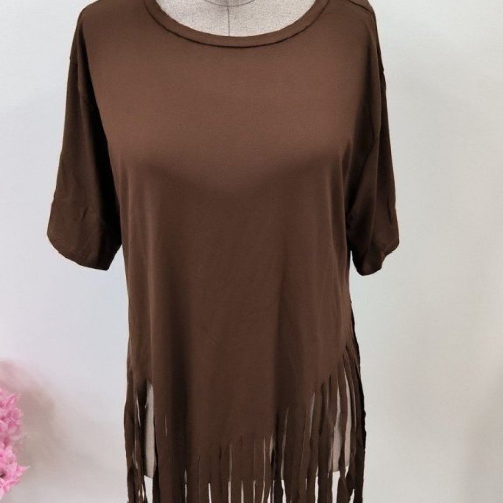 Kadın Kısa Kollu Bisiklet Yaka Püsküllü Viskon Bluz