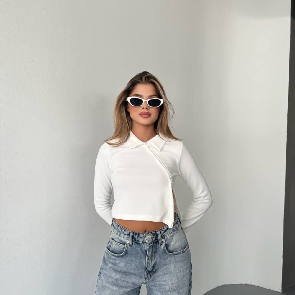OTTOMAN KUMAŞ ÇARPRAZ FERMUARLI CROP