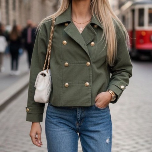 DÜĞME DETAYLI YAĞMUR GABARDİN CEKET