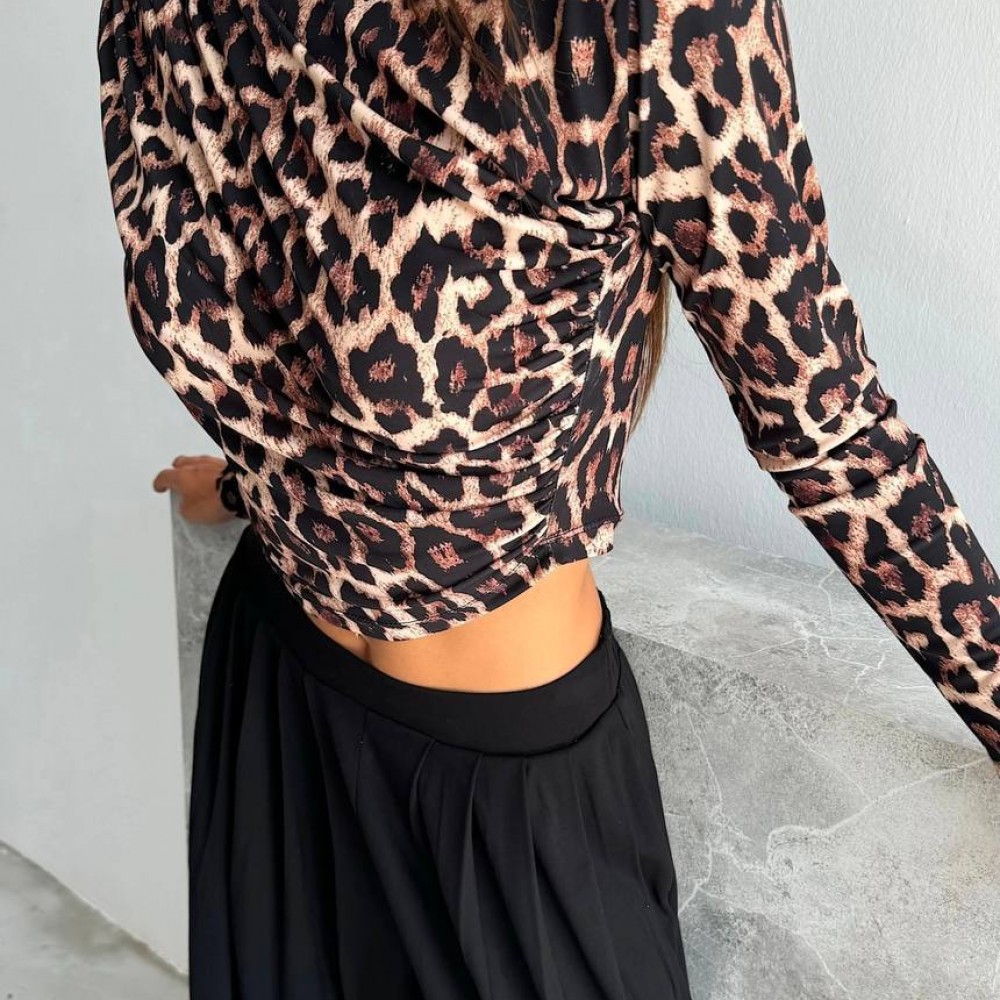 220158 TOPTAN LEOPAR BLUZ