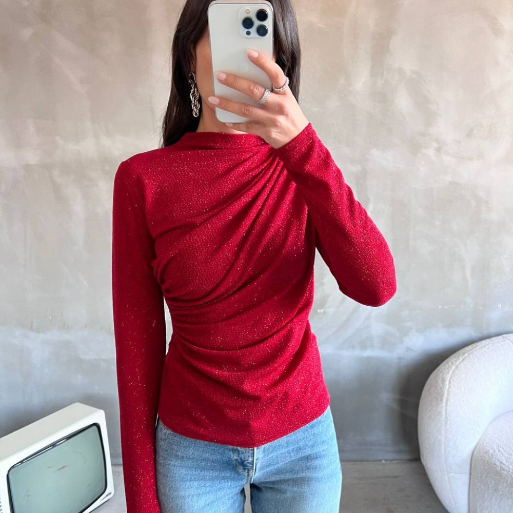 220289 TOPTAN KIRMIZI BLUZ