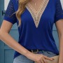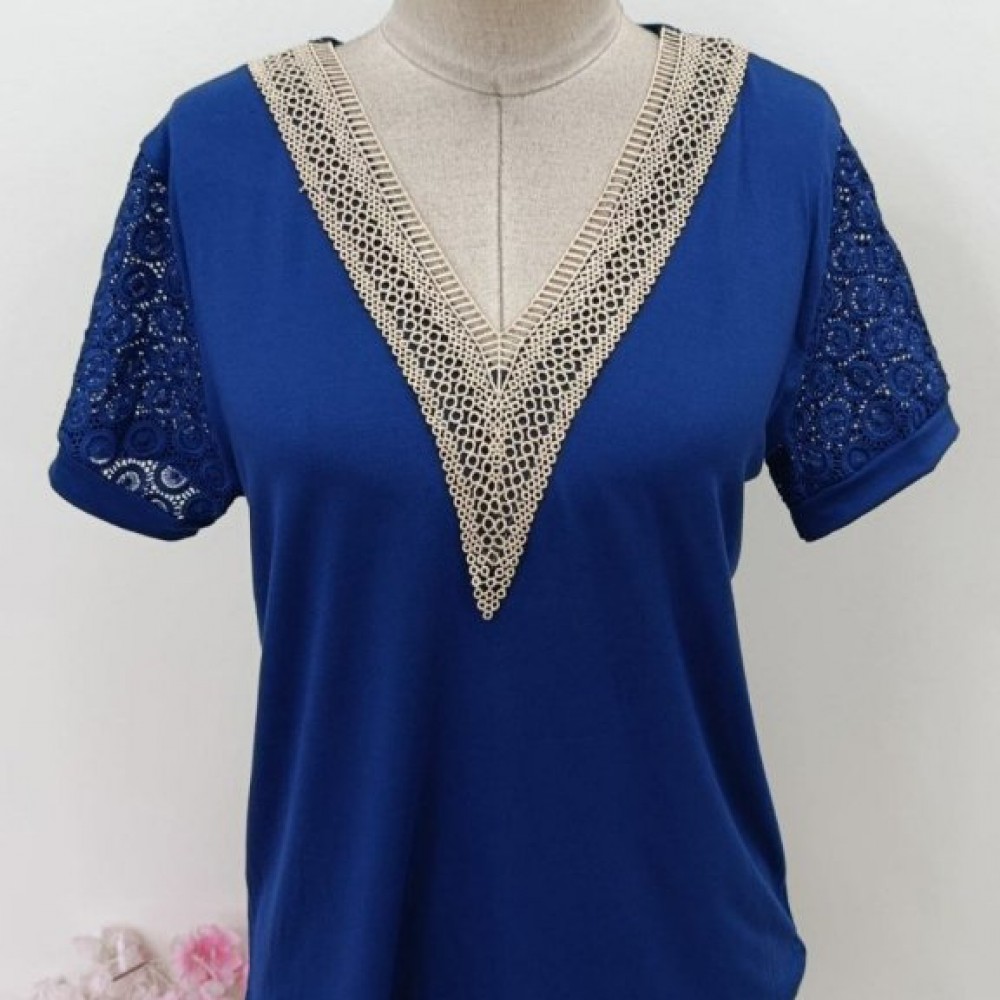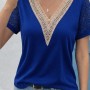 Kadın Kısa Kollu V Yakalı Dantel Detaylı Viskon Bluz