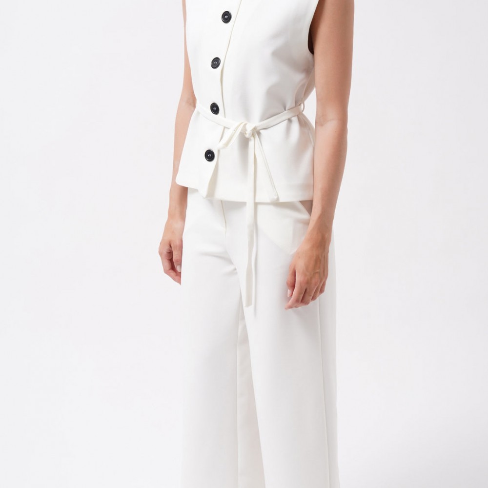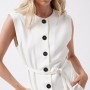 Beş Düğmeli, Bisiklet Yaka, Kuşaklı, Düz Kesim Dokuma Yelek Manken Ölç