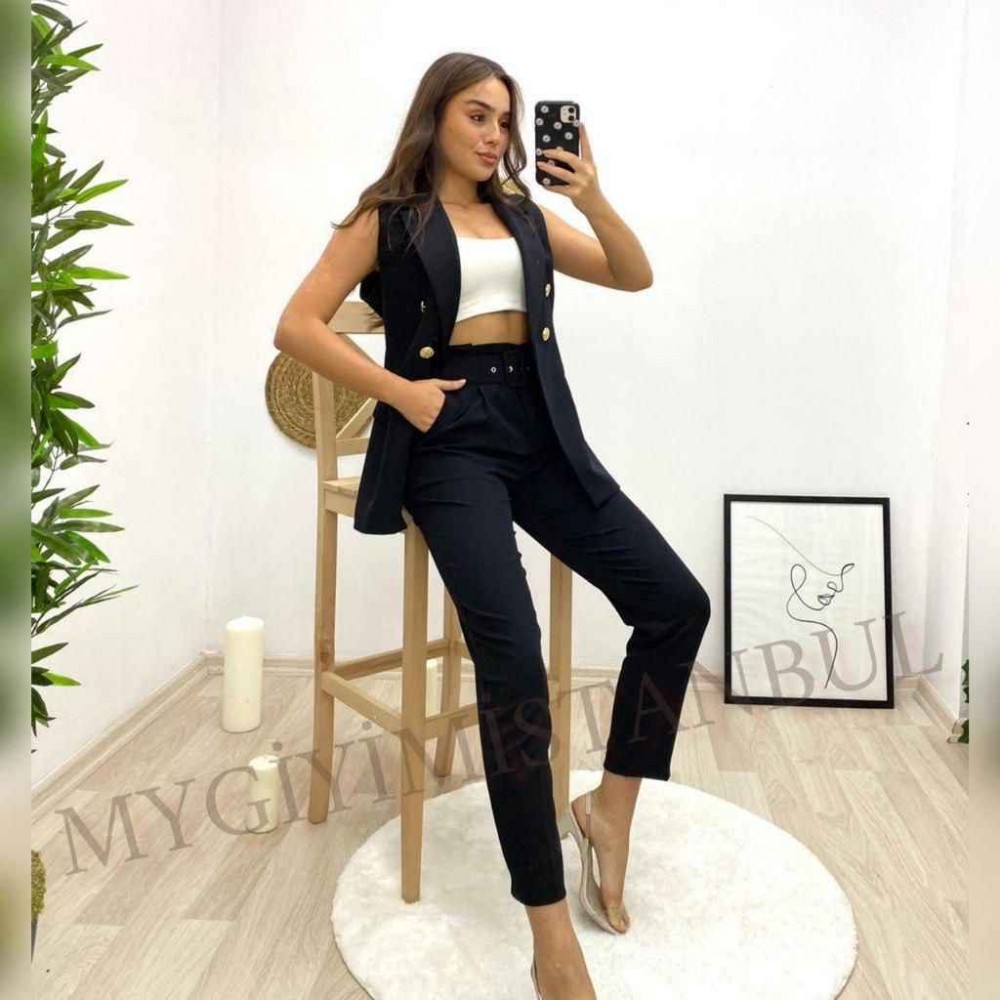 146882 TOPTAN SİYAH PANTOLON TAKIM