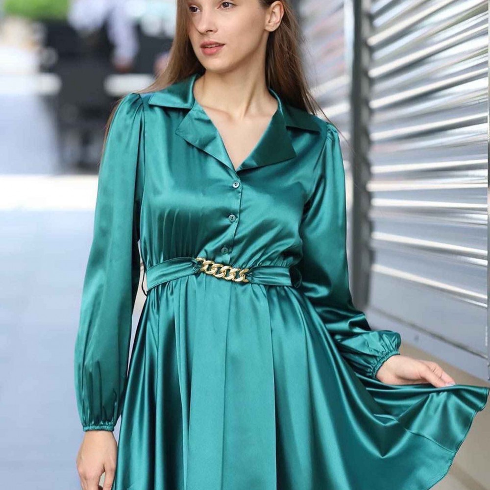 147030 TOPTAN ZÜMRÜT YEŞİL ELBİSE