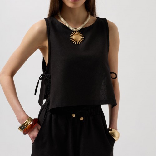 Yanları Ve Yakası Biyeli, Yandan Fiyonk Bağlamalı, Keten Bluz Manken Ö