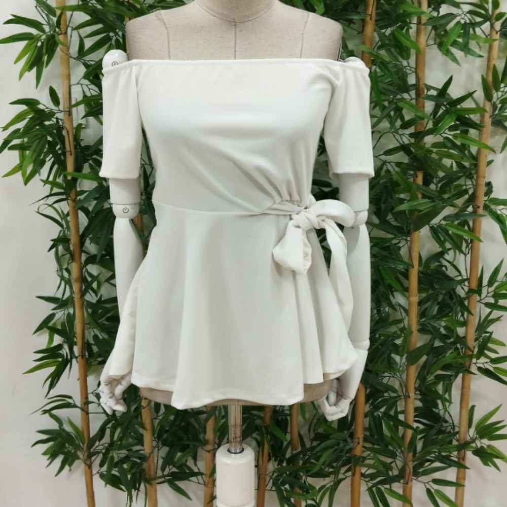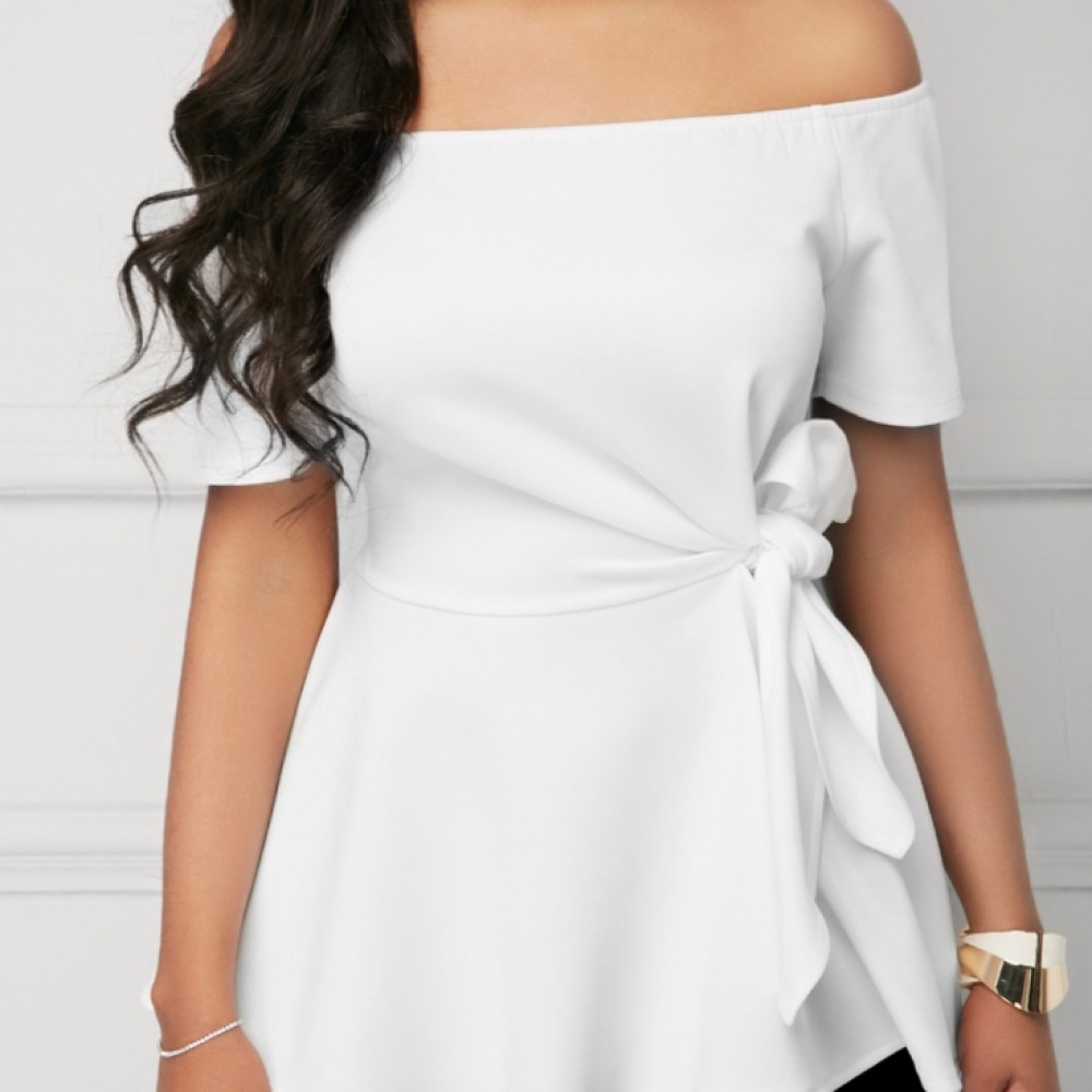 Kadın Kısa Kollu Madonna Yaka Yandan Bağlamalı Ithal Krep Bluz