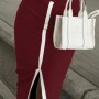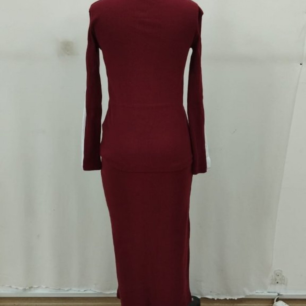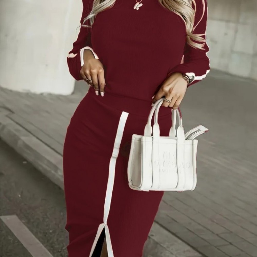 Kadın Uzun Kollu Bisiklet Yaka Kaşkorse Bluz Ve Yırtmaçlı Etek Ikili T