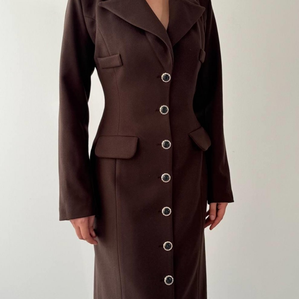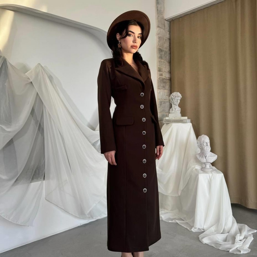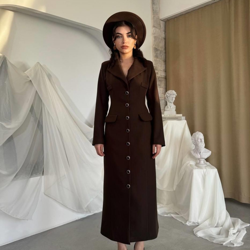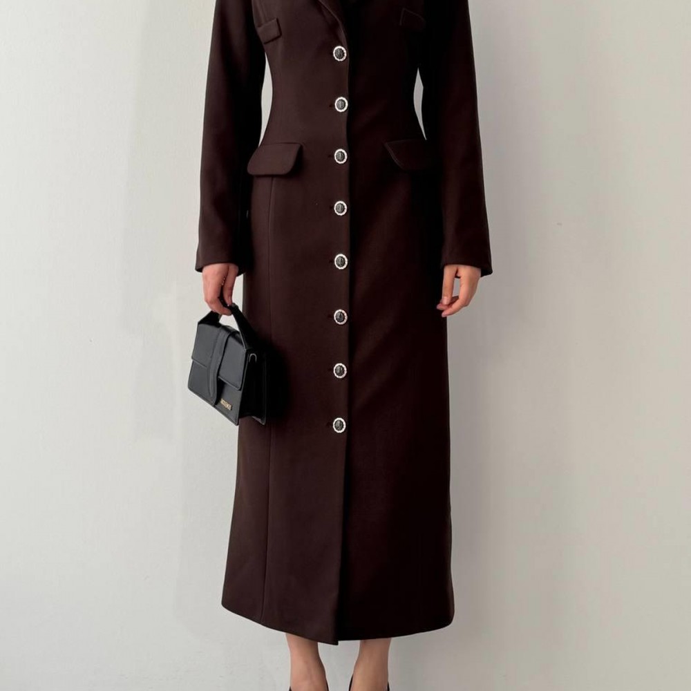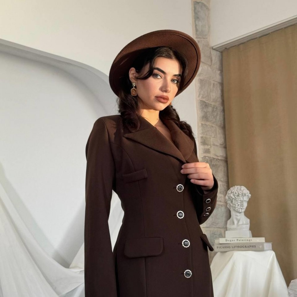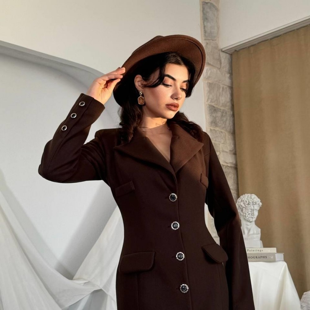 M00787-KAHVE KAHVE CEKET ELBİSE