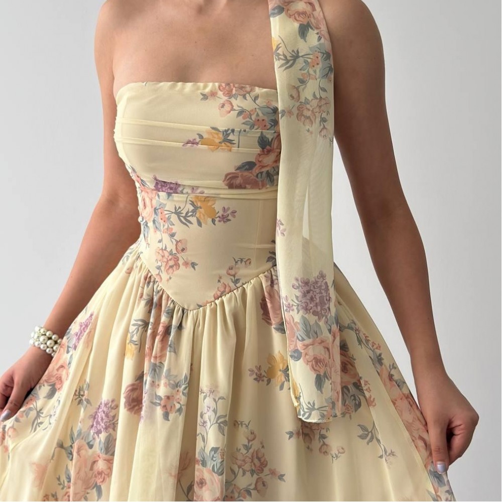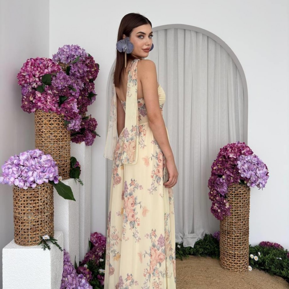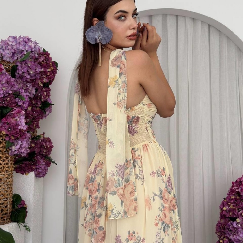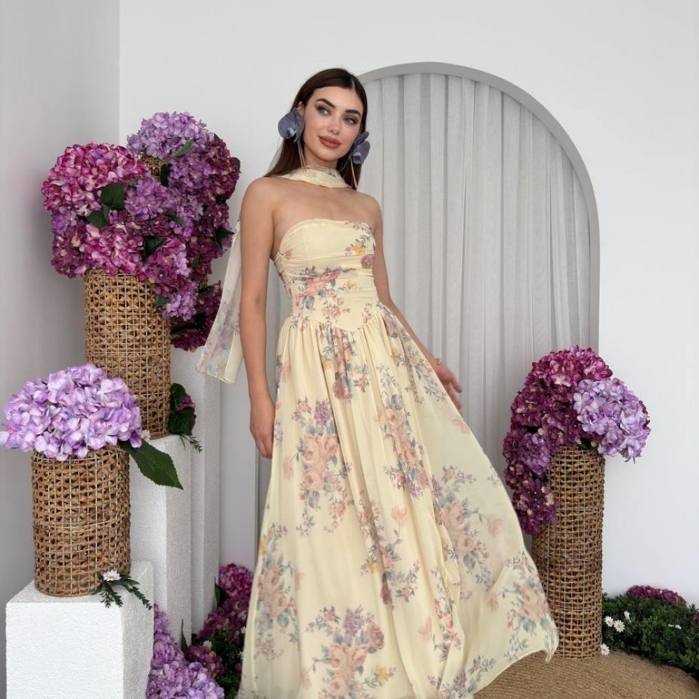 M00713-ÇİÇEK DESEN ÇİÇEK DESEN ELBİSE
