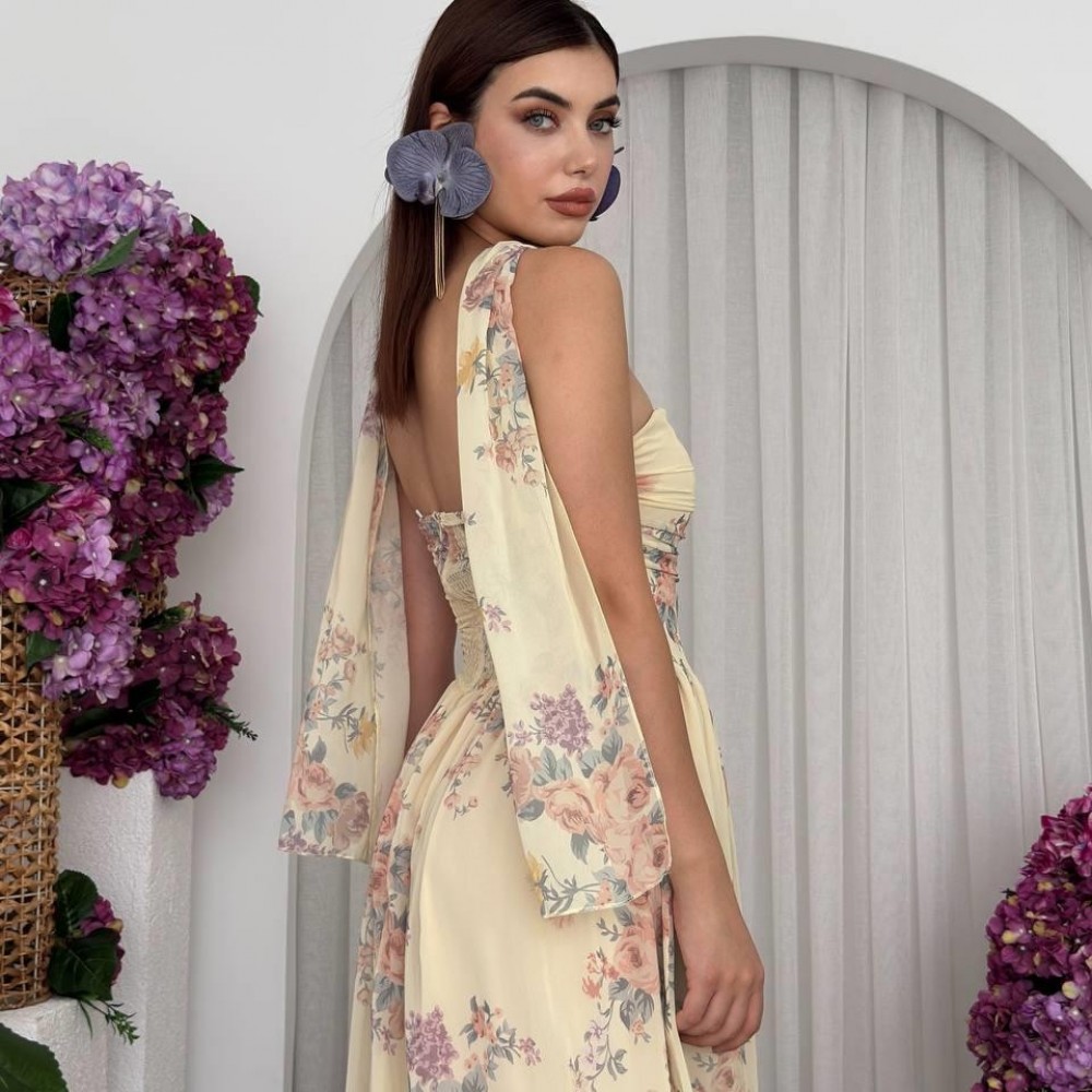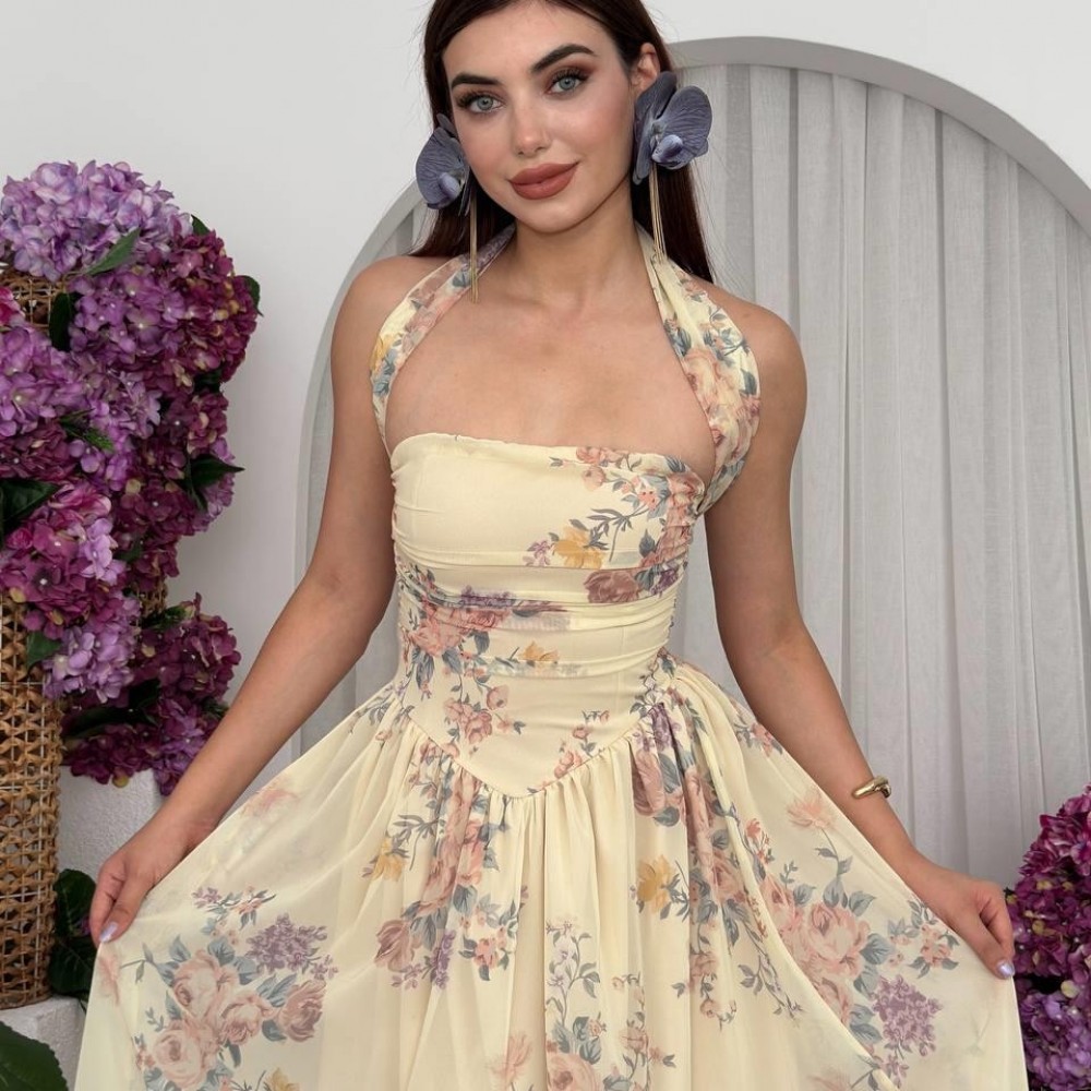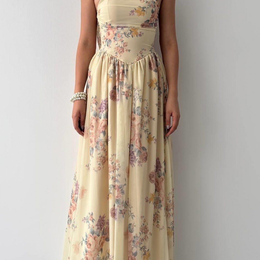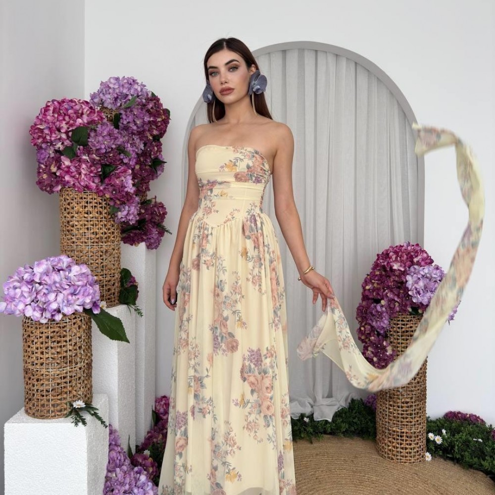 M00713-ÇİÇEK DESEN ÇİÇEK DESEN ELBİSE