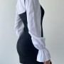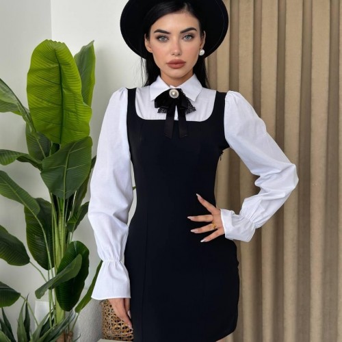 M00270-SİYAH BEYAZ SİYAH BEYAZ ELBİSE